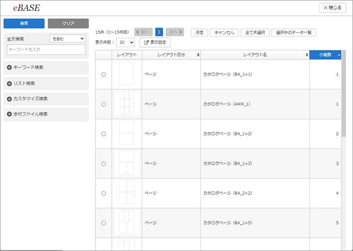 データベース上での台割(ページネーション)管理や統合商品情報データベース「eBASE」との連携により、掲載商品のスムーズな選定が可能です。また、商品選定の変更履歴管理にも対応しています。