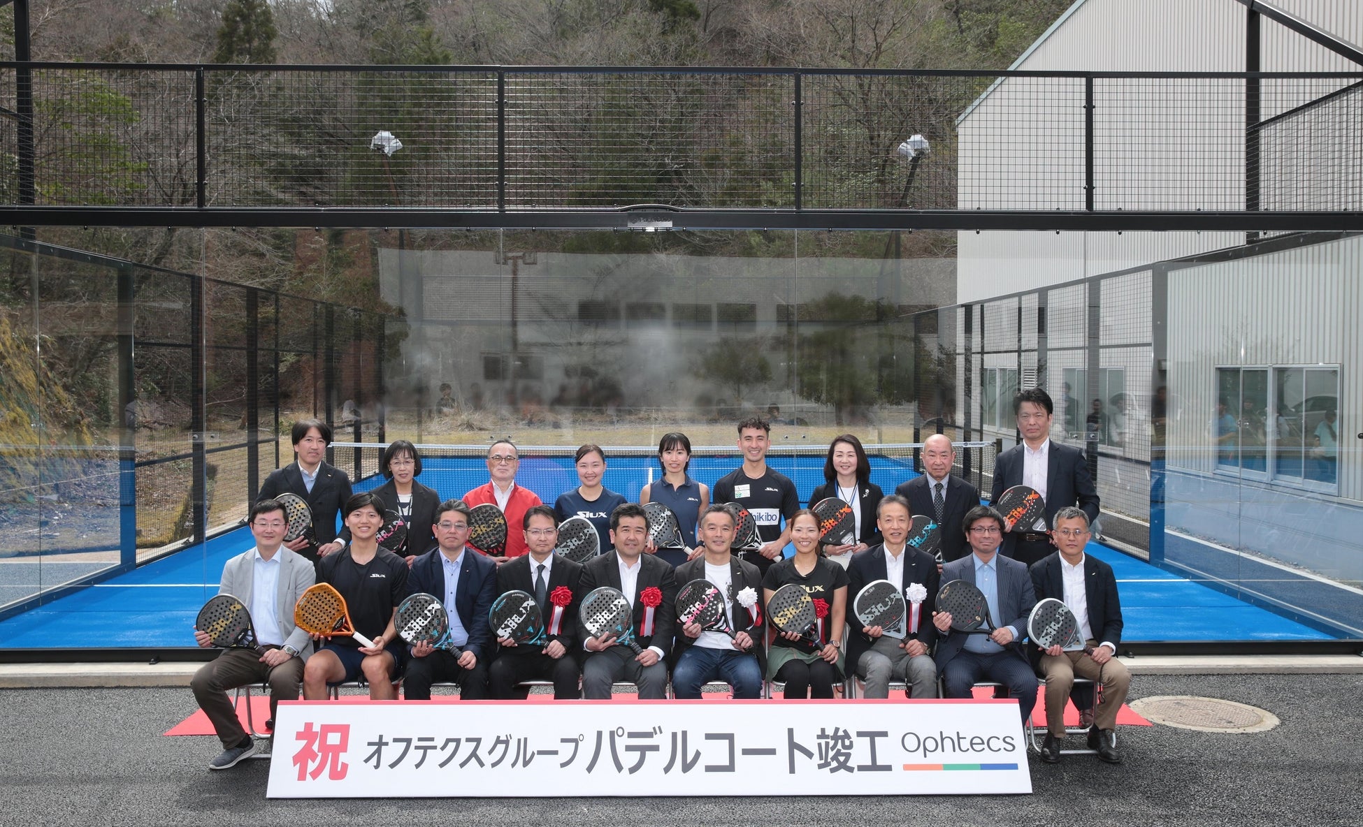 【スペイン発祥の新感覚ラケットスポーツ「パデル」の運動施設を新設】世界最大のパデルコートメーカーであるパデルガリス社のコートが日本初上陸し、2024年4月6日にオフテクス社で完成披露セレモニーを開催!