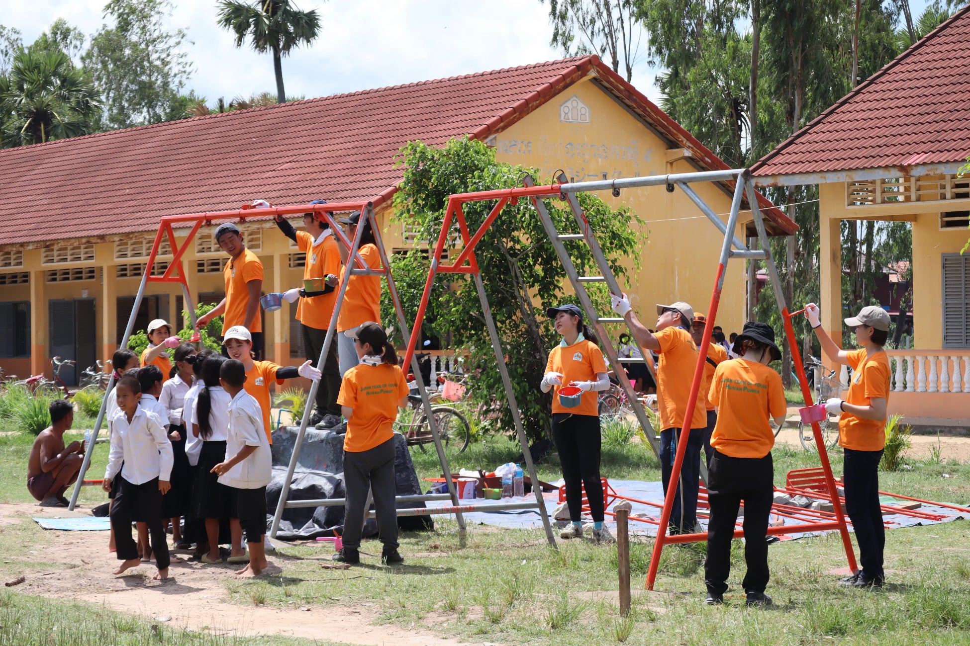 今年は、JHPが建設支援したプレイベン州の遊具がない小学校の校庭にブランコを建設したり、 学生主体で企画した衛生教育の英語劇の披露や廃材を使ったアート創作活動、子ども達との日本文化を交えた交流、現地NGO見学など、盛りだくさんの活動を行いました。