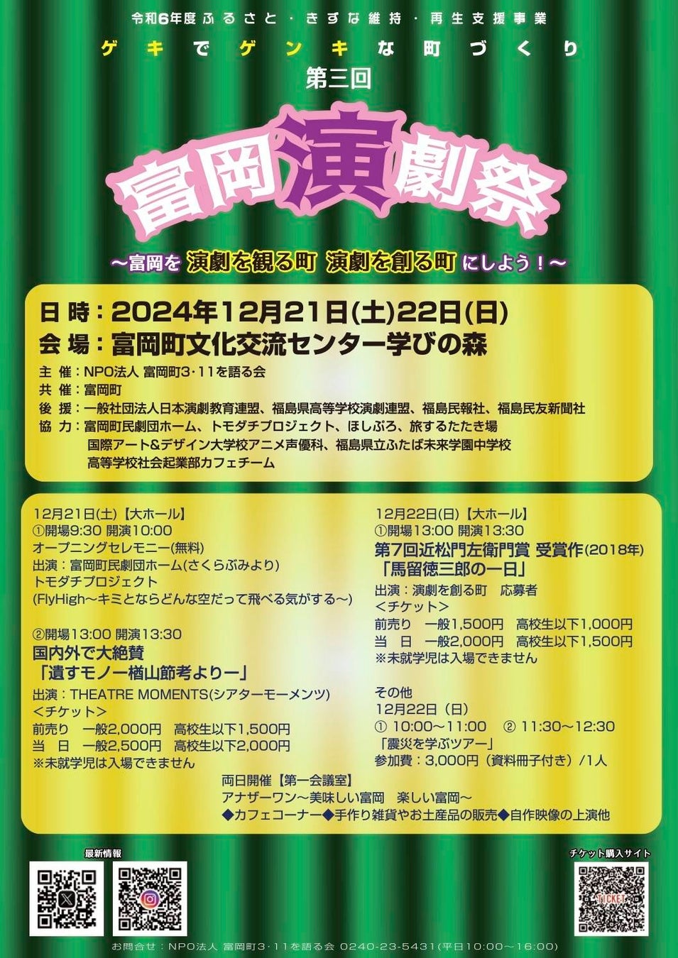 [第3回富岡演劇祭] - [特定非営利活動法人富岡町3・11を語る会]主催、[2024年12月21日、22日]に開催