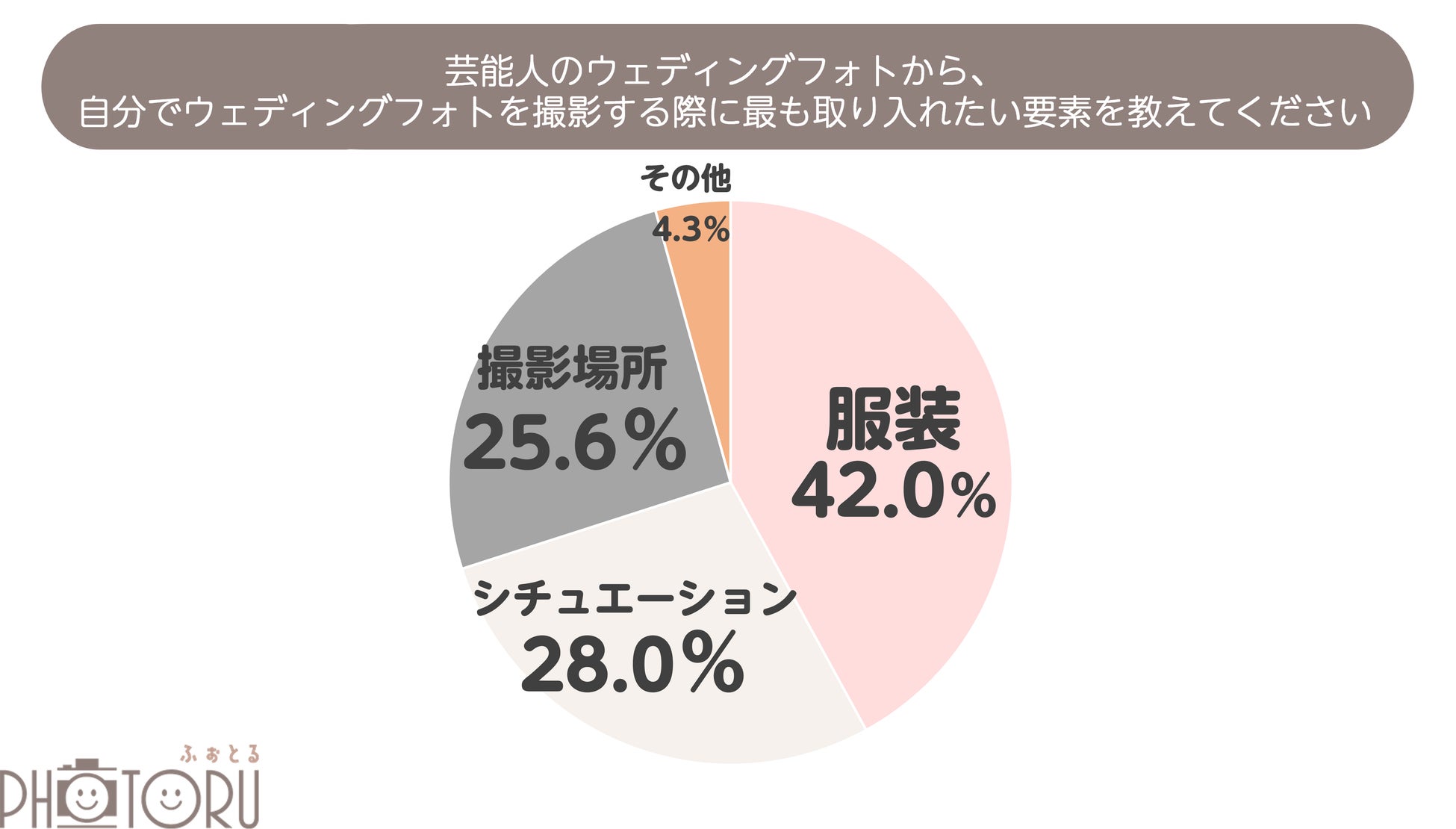 「服装」(42.0%)が最も多く、次いで「シチュエーション」(28.0%)、「撮影場所」(25.0%)という結果になりました。