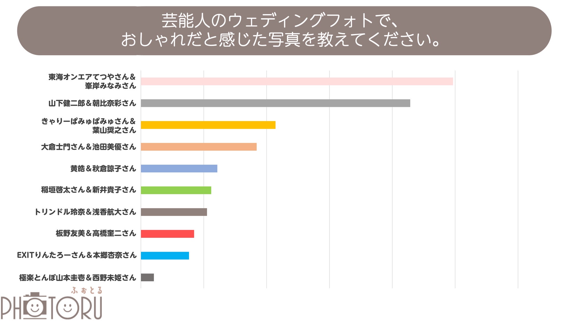 出張撮影のふぉとる、女性1400人に「芸能人のウェディングフォト」人気ランキングを調査!