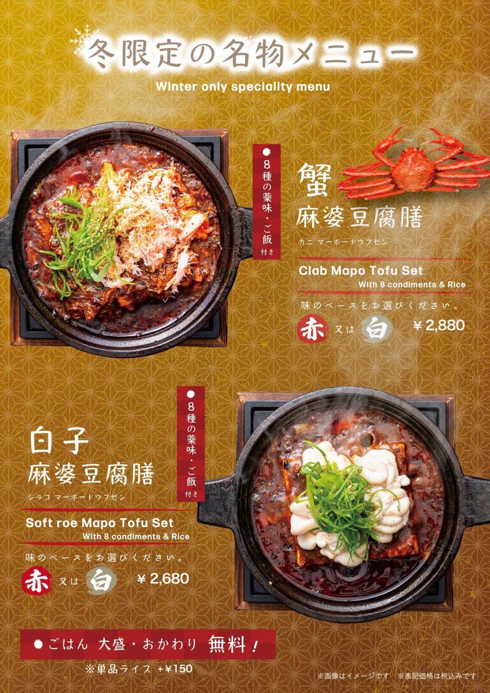 ■今年の冬は「紅ズワイガニ」と「白子」の贅沢麻婆豆腐が新登場