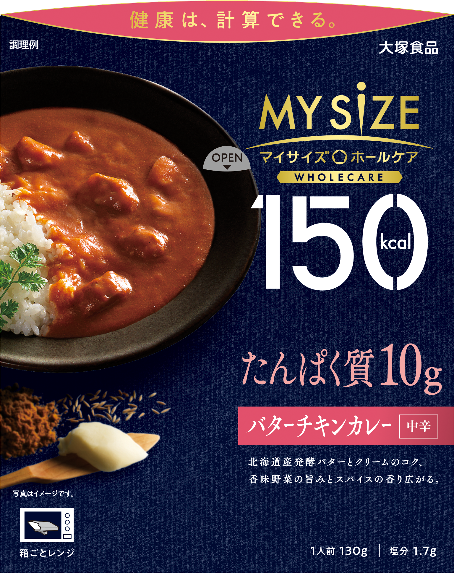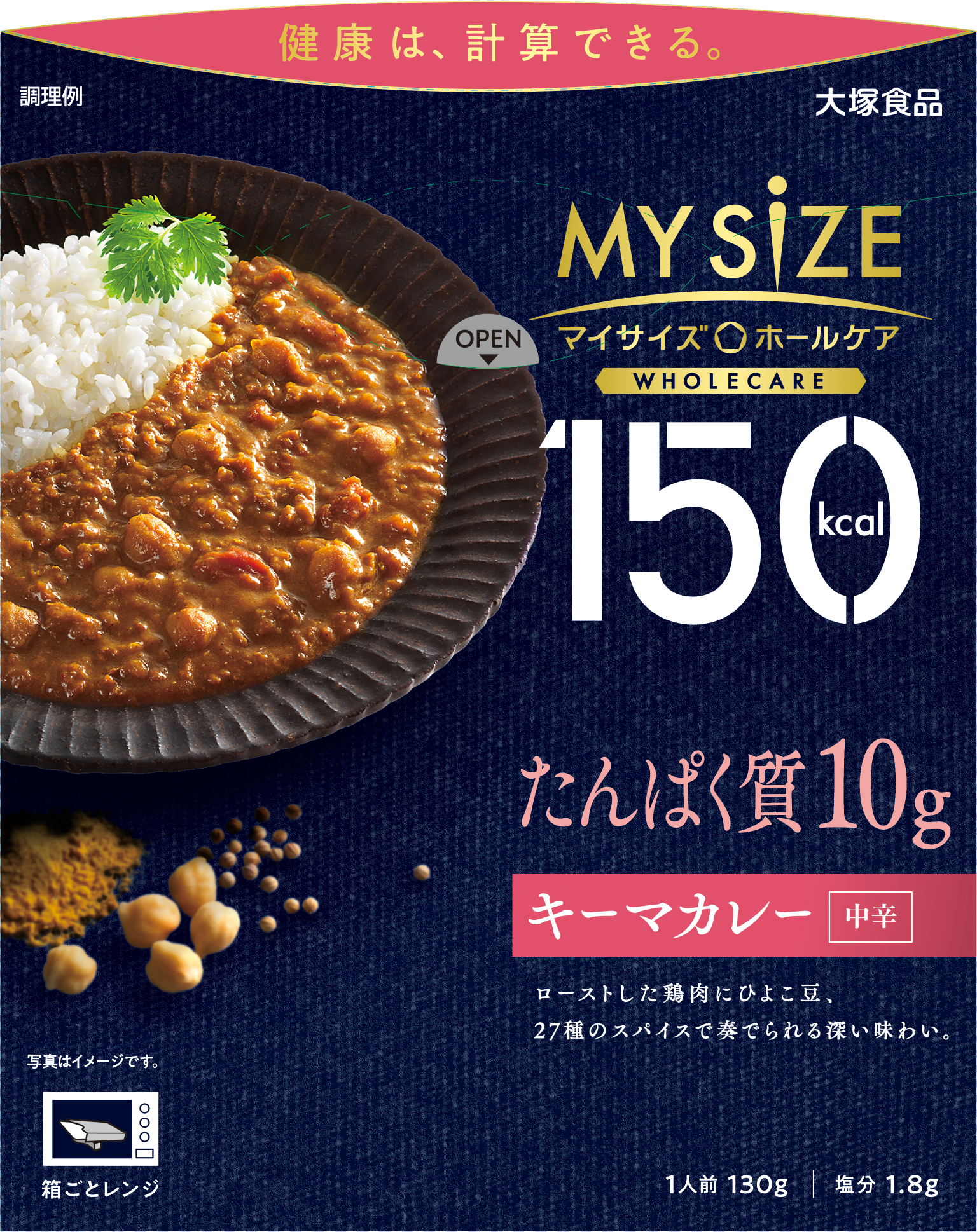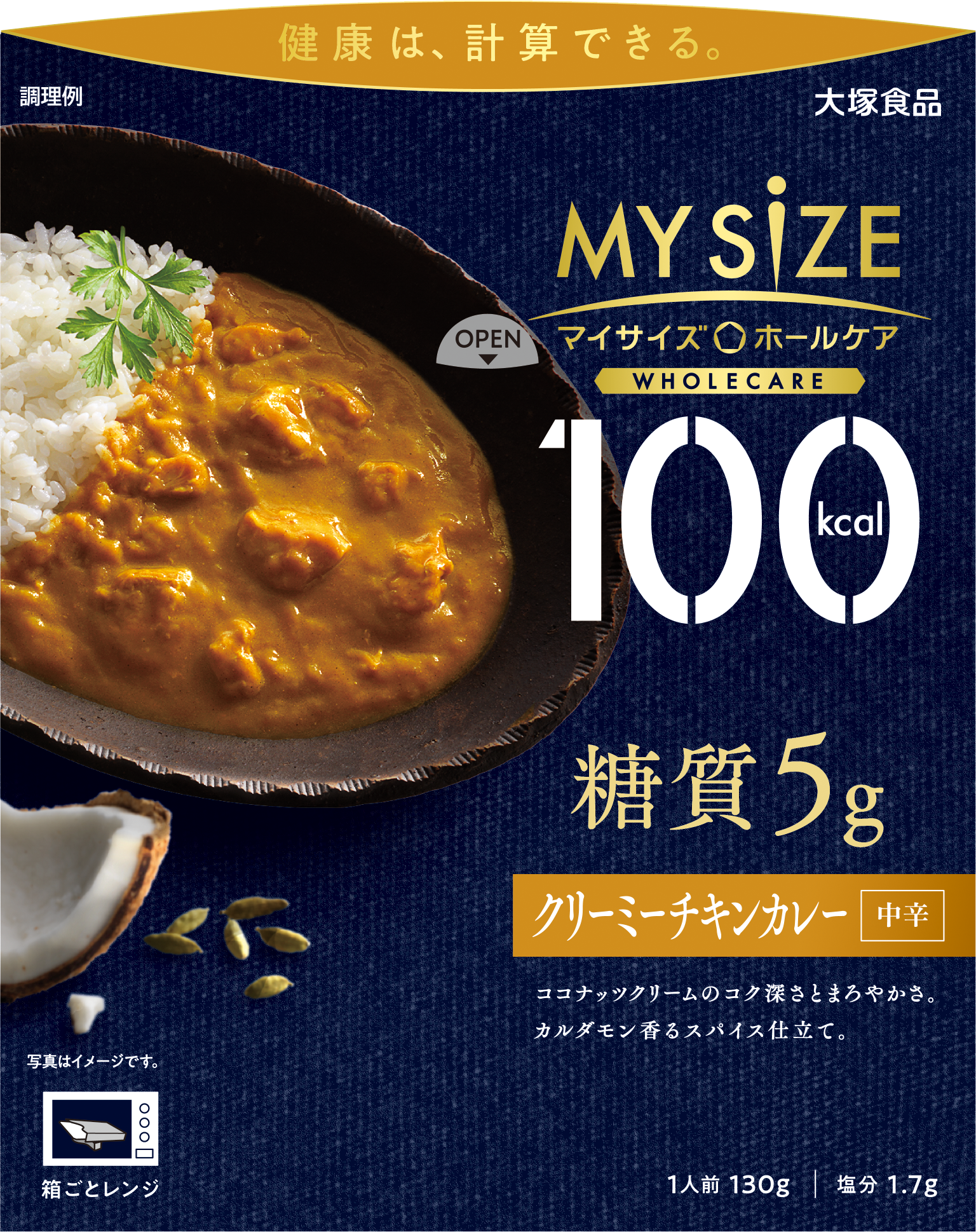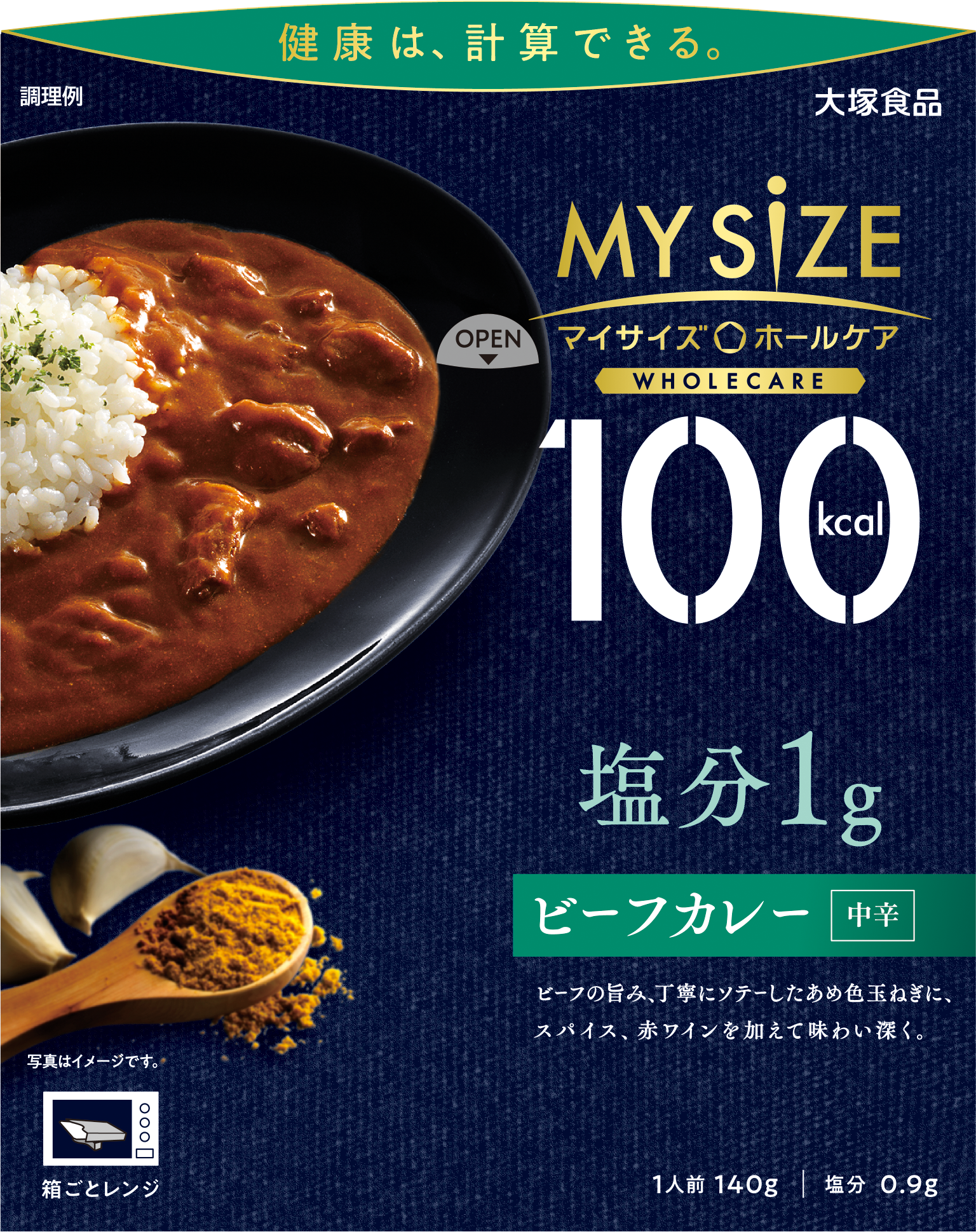 『マイサイズ』は、「食事にもサイズがあっていい」というコンセプトのもと開発した、100kcalのレトルト食品を中心としたシリーズです。分かりやすいカロリー表示と幅広いメニューで食事管理に活用しやすく、2010年の発売以来、多くの方にご支持をいただいています。