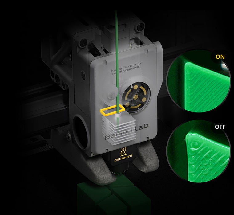 A1 miniは、高解像度、高周波数の渦電流センサーを利用してノズル内の圧力を測定し、独自のアルゴリズムにより測定された値に基づいて流量を能動的に補正し、正確に押出をおこないます。