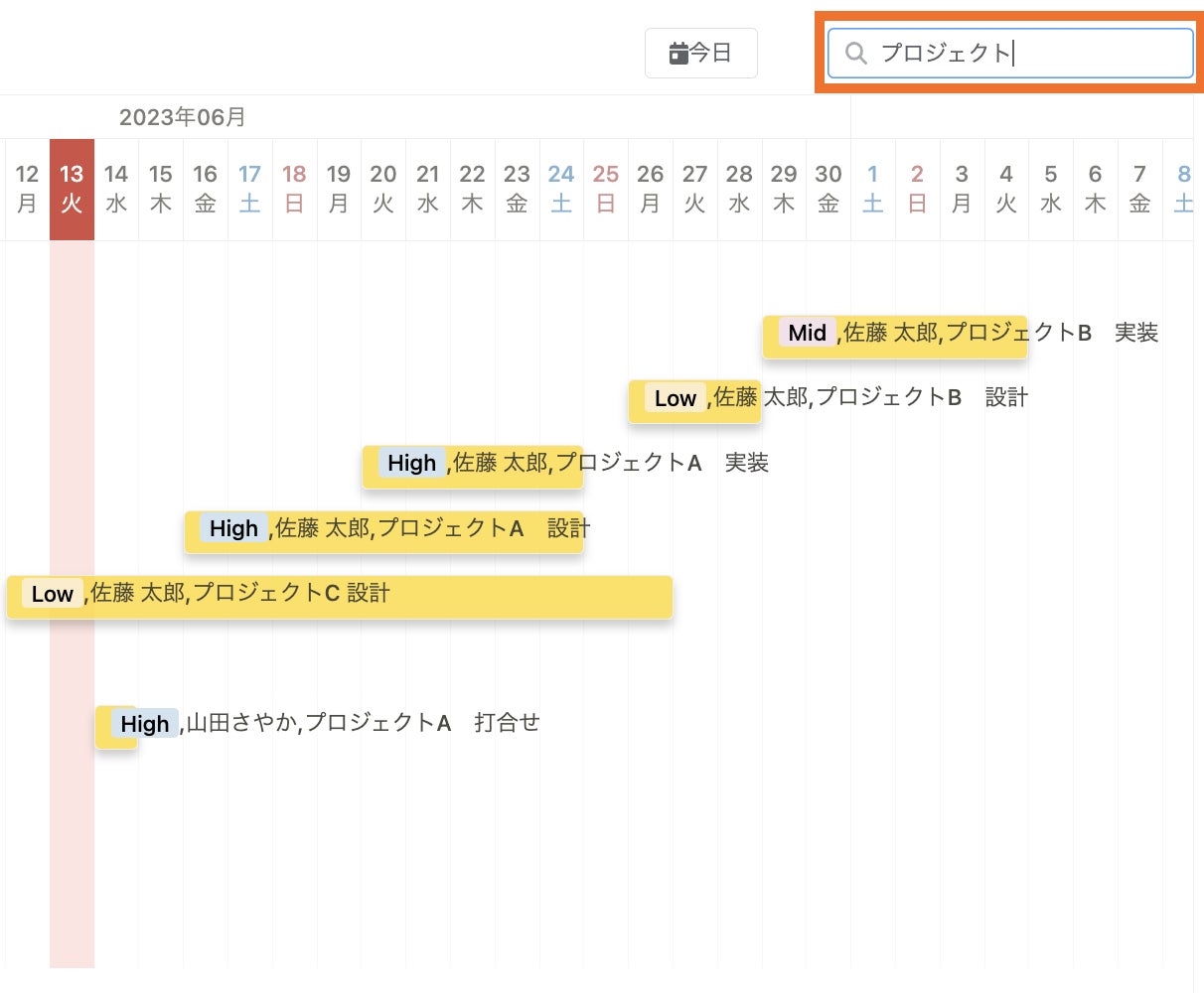 特定のキーワードを入力することで、データベースや情報管理システムなどの中から関連する情報を検索する機能です。これにより、情報の整理や分析が容易になり、プロジェクトの全体像を把握しやすくなります。