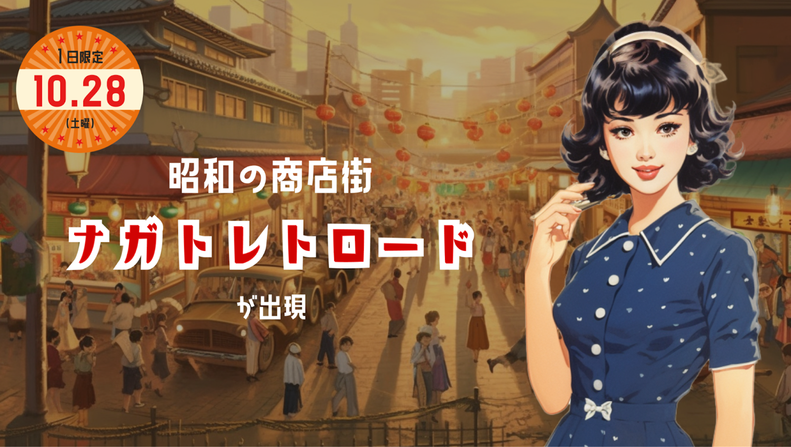 本イベントは、「昭和レトロ」をテーマに親子3世代が楽しめる仮装パーティイベントです。当日は、地域の世代を超えた会話や交流が生まれ、街の新しい楽しみ方を生み出すべく、長門駅前北口前に、1日限りの商店街「ナガトレトロード」が出現いたします。ハロウィンの時期となる開催日に、仮装パーティイベントが新たな賑わいとなり、今後「長門市のハロウィンと言えばナガトレトロ」と本イベントが定着することを期待しております。