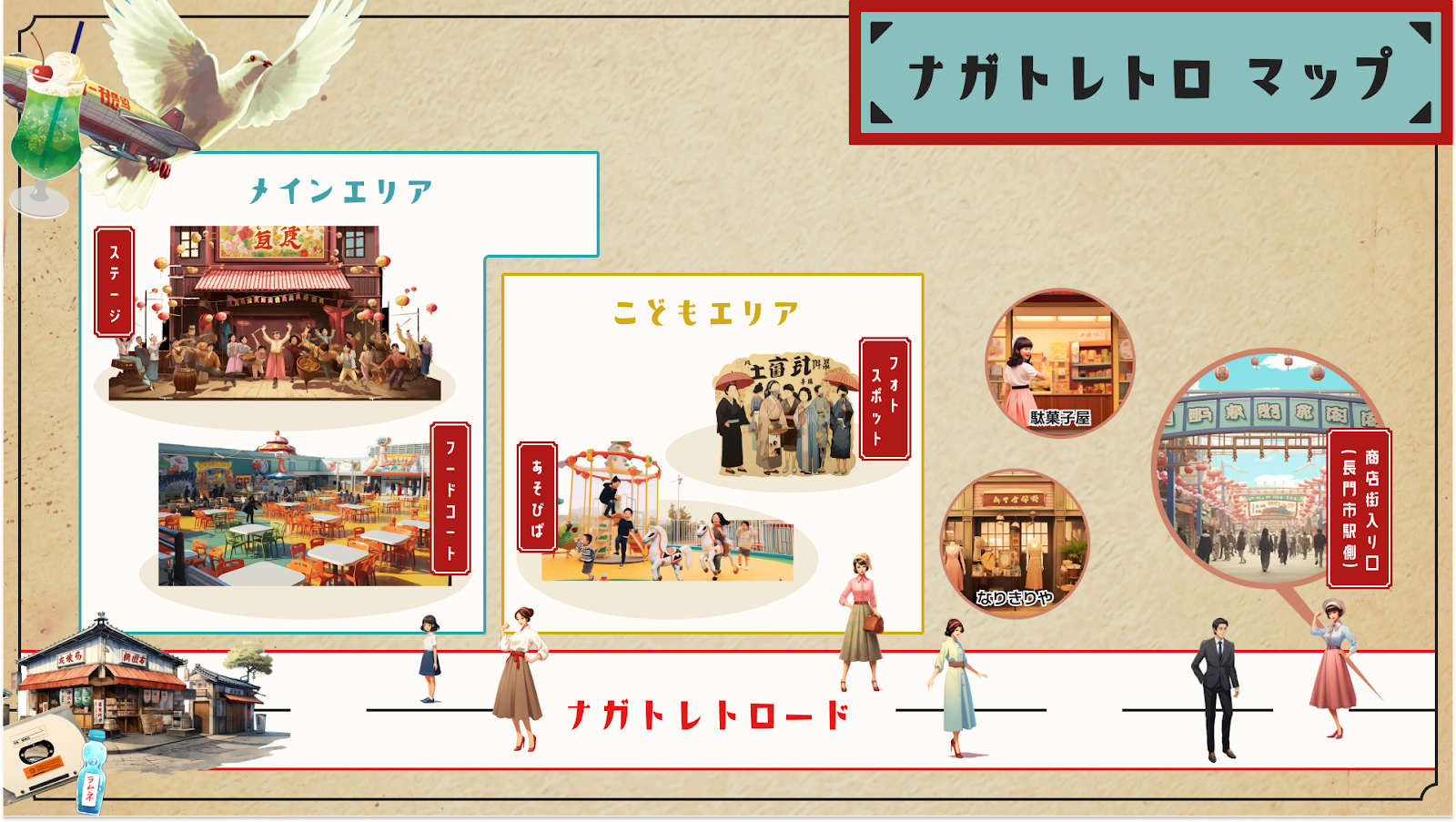 長門駅前にて、親子3世代を繋げ次の100年へ結ぶ、昭和レトロがテーマの仮装パーティイベント「ナガトレトロ」の開催が決定