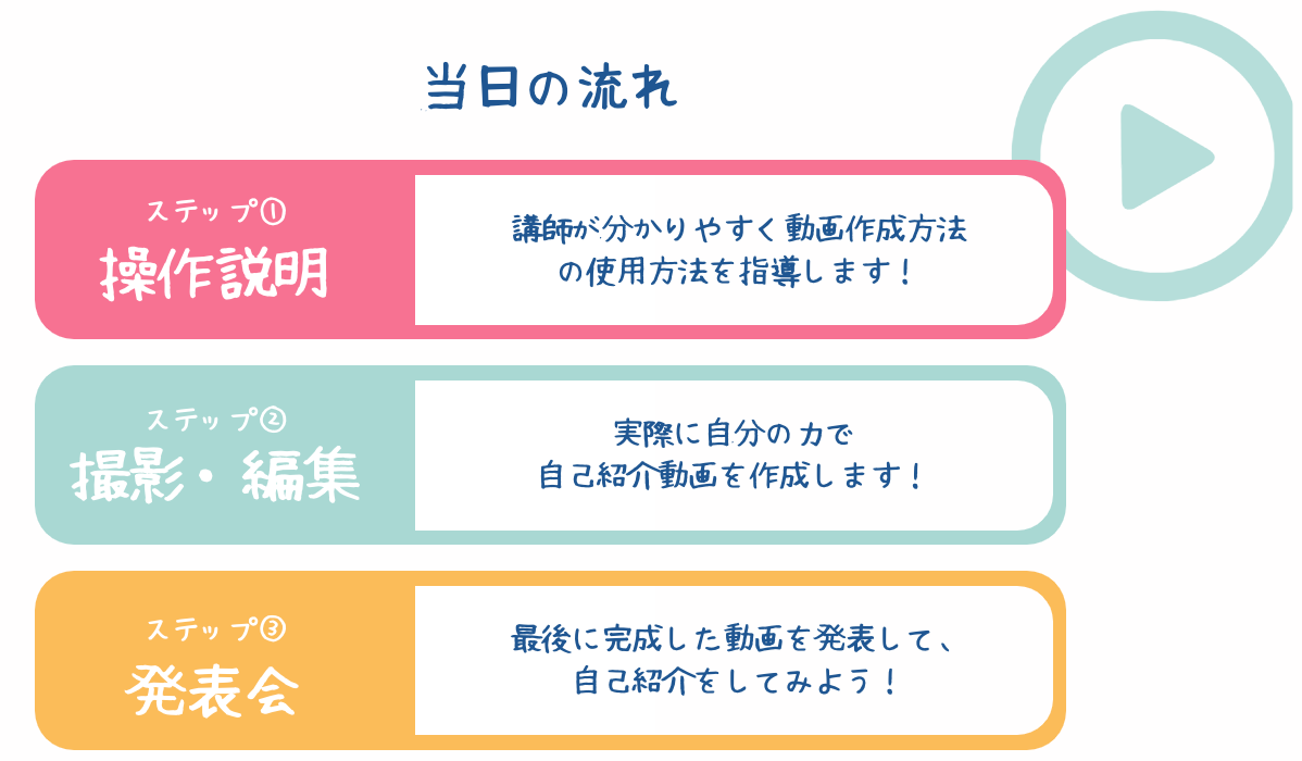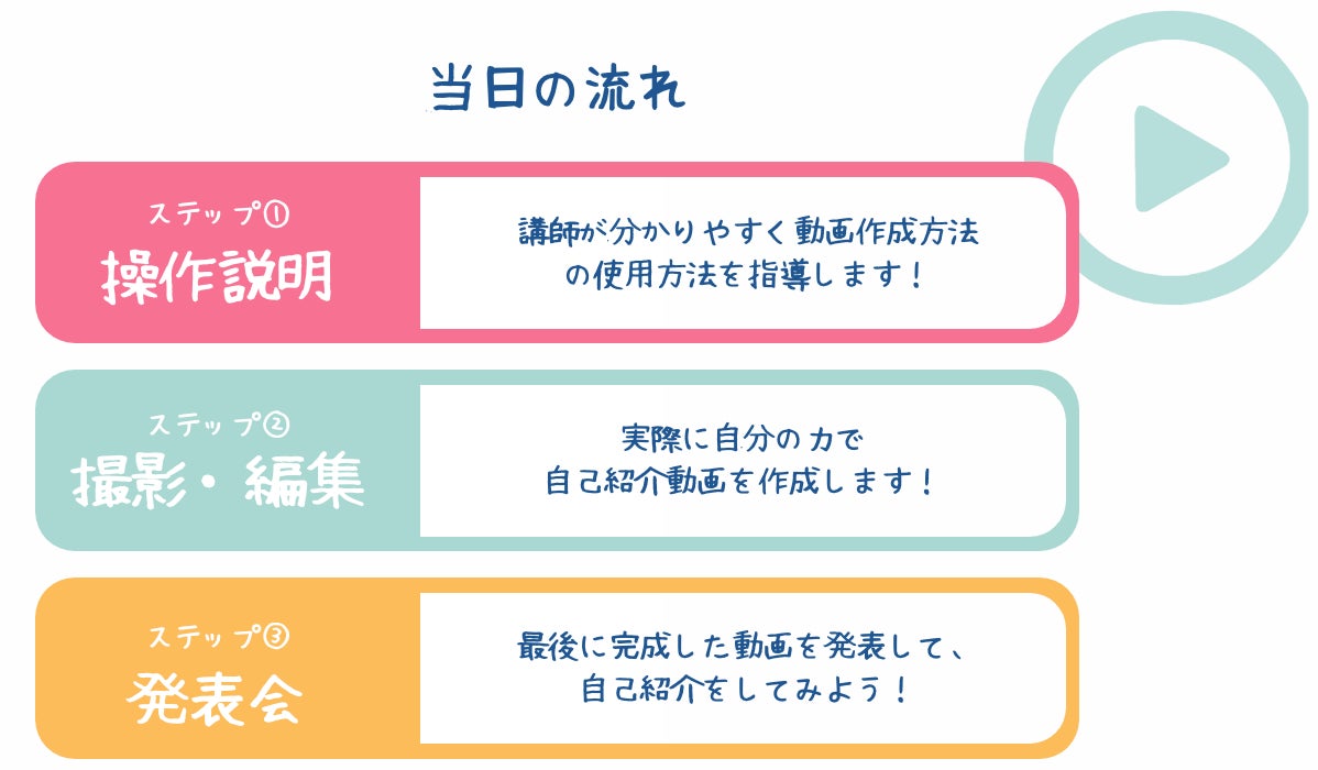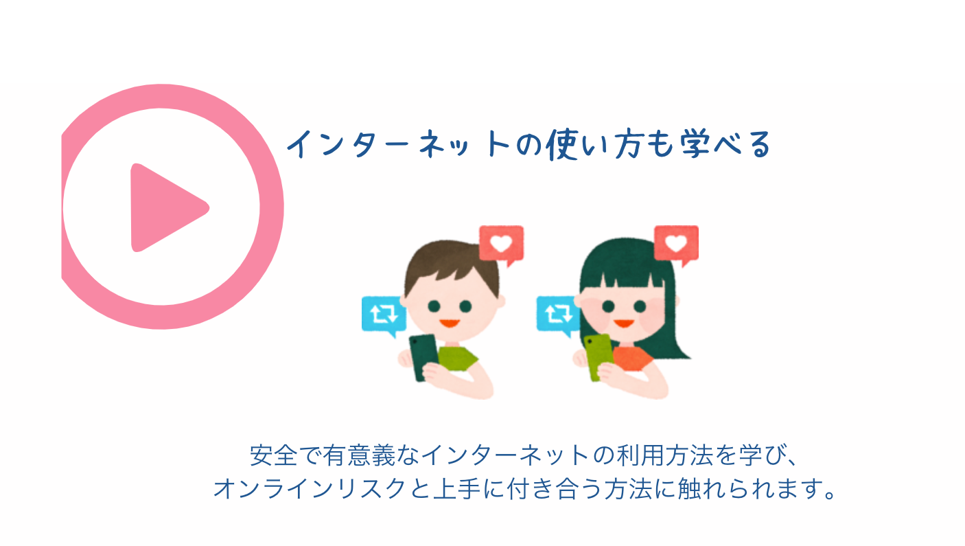 名前、好きなこと、考えていることなど、自分のことを60秒の動画で伝えます。同時に安全で有意義なインターネットの利用方法についても学び、オンラインリスクと上手に付き合う方法も身につけられます。