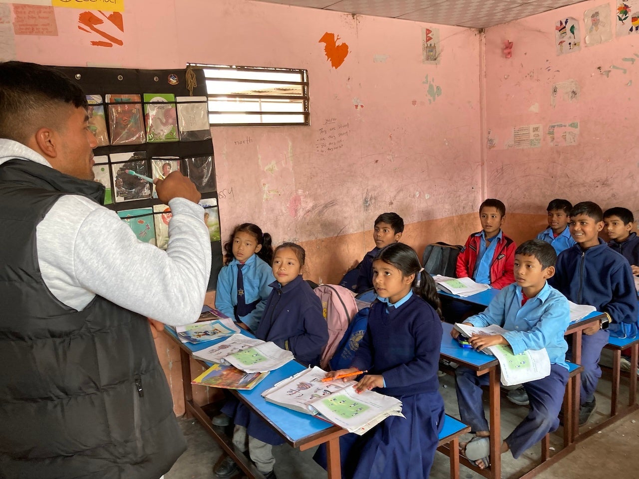 今回訪れた学校「ギャンビカース・アダルブットスクール」は、幼稚部から5年生まであり、村からカトマンズに出稼ぎに出てきた労働者や農家の子どもたちが多く通っており、経済的に厳しい家庭の子どもたちが多くいます。