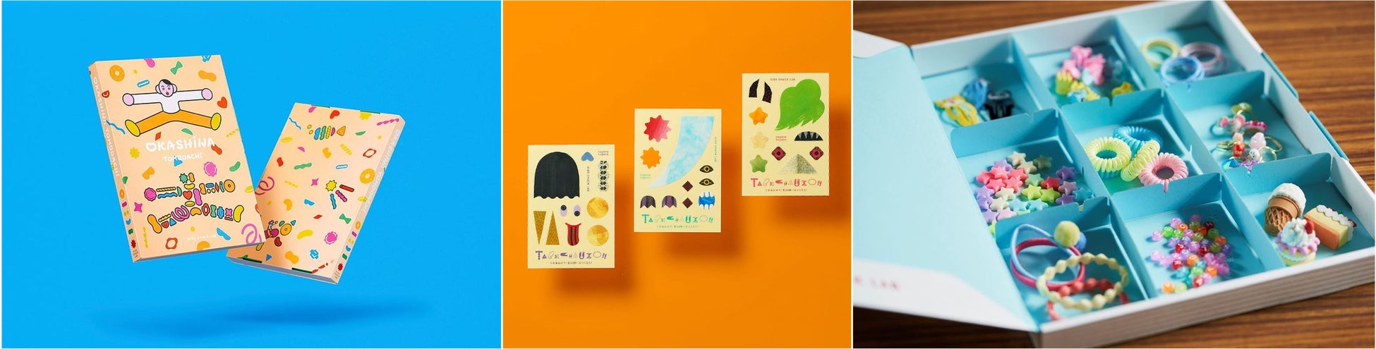今回のPOP UP SHOPでは、絵本作家やイラストレーターなど、さまざまなシーンで活躍するアーティストの方々がデザインしたセットボックスに好きなお菓子を詰め合わせることができます(オリジナルシール付き)。見た目も楽しく、ワクワクを誘うボックスは、アクセサリーなどの小物やおもちゃ、文房具などを収納できるなど、食べ終わったあとも活用できます。