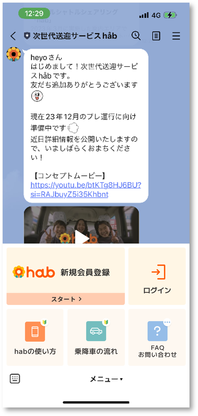 hab公式LINEアカウントにご登録いただき、手順にそって必要情報を登録ください。詳細はhab公式HPよりご確認ください。