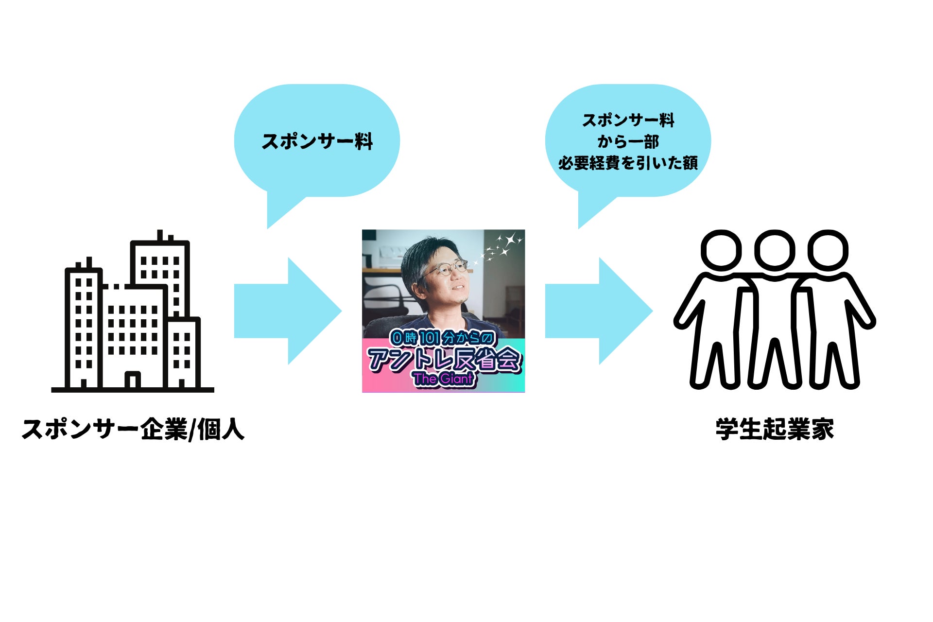 番組に出演した学生/若手起業家へ、番組スポンサー料の一部を創業資金として寄付します。