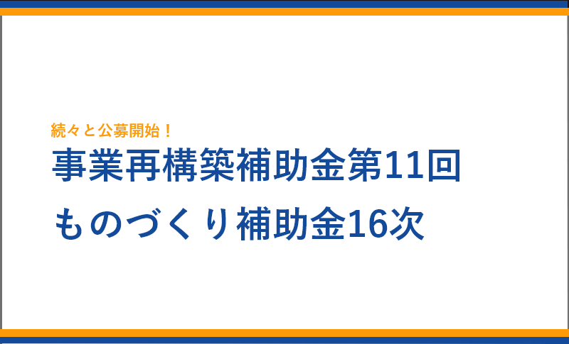「事業再構築補助金11回」と「ものづくり補助金16次」の申請サポート受付中。