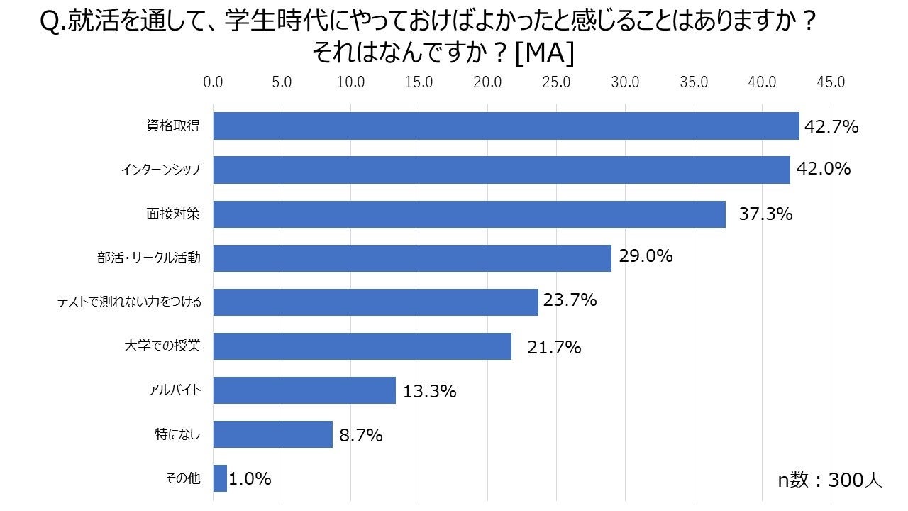 ▼就活生が、学生時代にやっておけばよかったと思うことTOP3は?