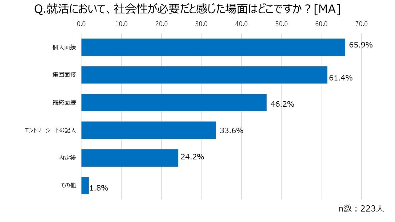 就職活動中、特に社会性が求められる場面は個人面接であることが明らかに