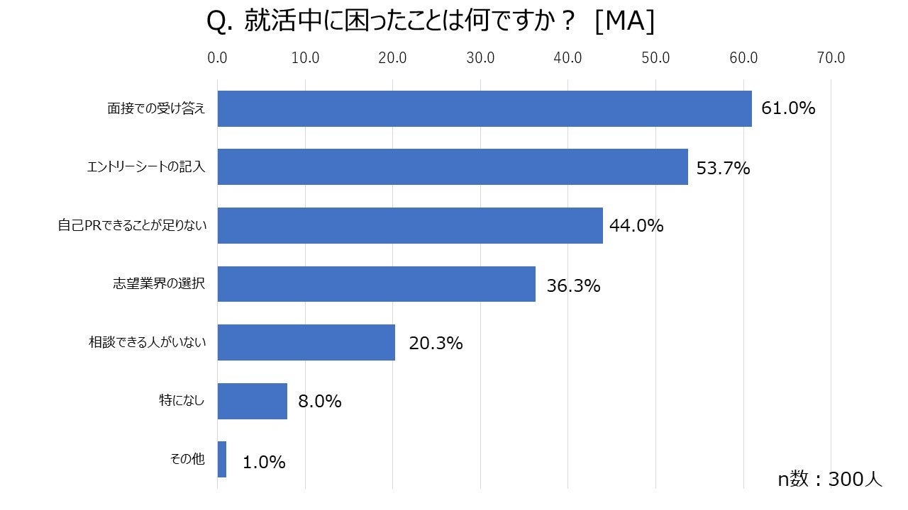 - 就活中にもっとも困る場面は、“面接での受け答え”