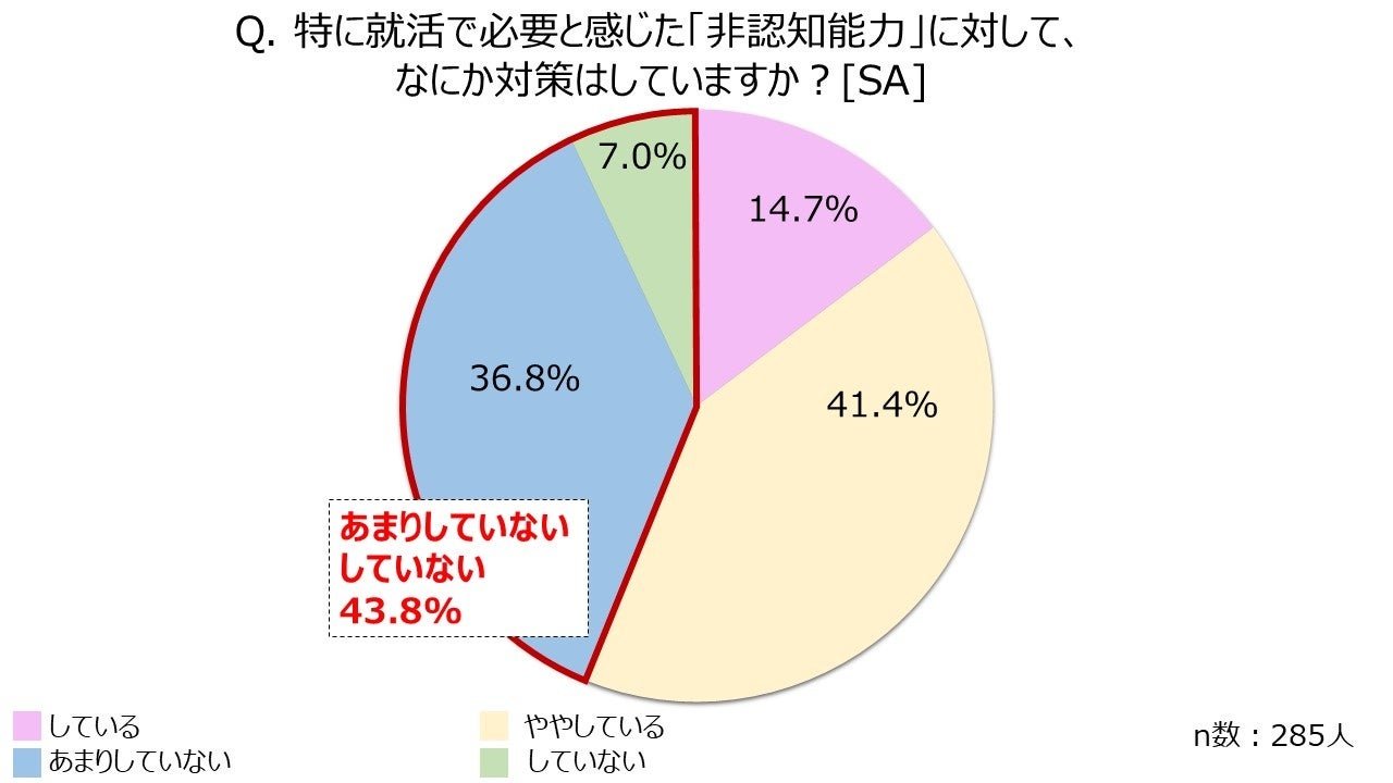 - 就職活動で特に必要と感じた「非認知能力」について、4割以上が「何も対策できていない」状況