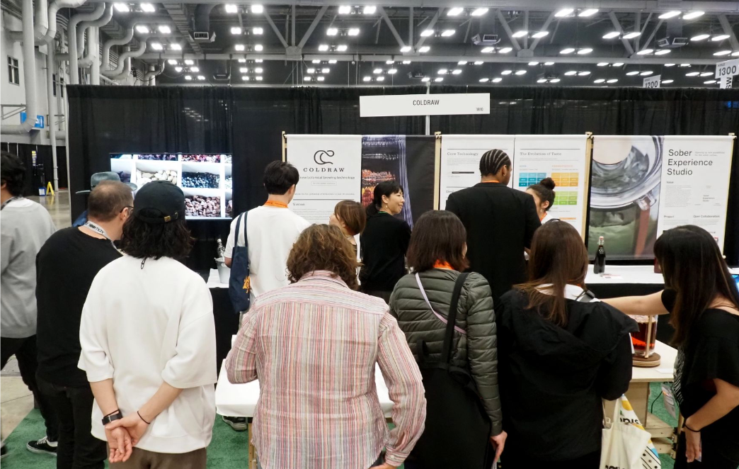 出展ブースはCOLDRAWのコンセプトモデル、プロダクションプロトタイプの実機を中心に置き、COLDRAWのビジョンやテクノロジー、Sober Experience Studioのバリューなどを背面に設置。什器は3Dプリンターを活用し、軽量・省資源で展示後も繰り返し使えるよう独自で作成・設置し、サステナブルを重視するプロジェクトの姿勢を表現しました。