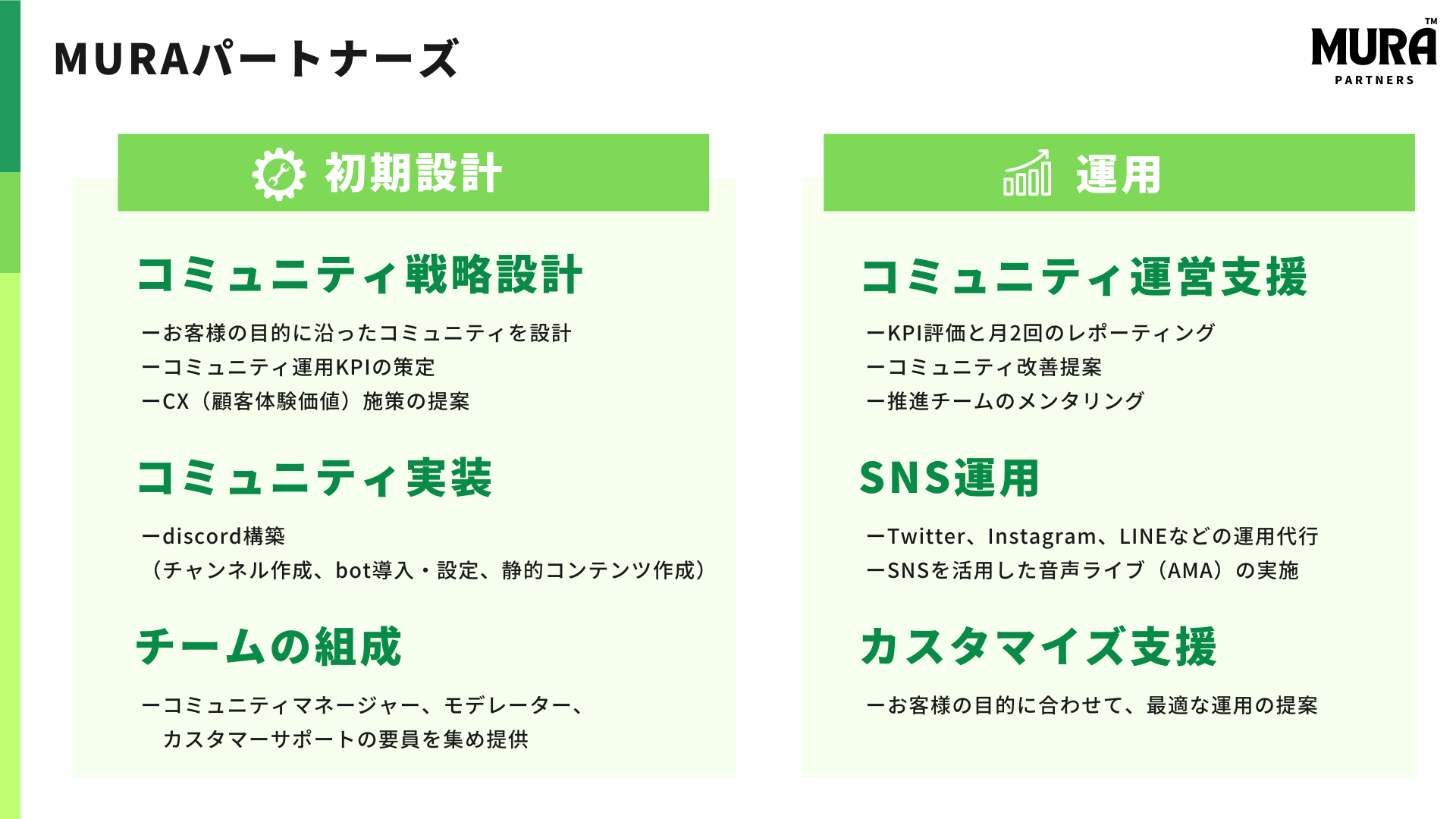 具体的には、discordの設計・運営に加えて、discordに慣れていないユーザーのためにLINEオープンチャットを活用した手厚いケア、ユーザー同士がデジタル友達となり毎日コミュニティに来たくなるようなエンターテイメントの施策や、お金に代えがたい顧客体験として推し活の熱源をアイドルに届けることのできる様々な施策を企画しております。