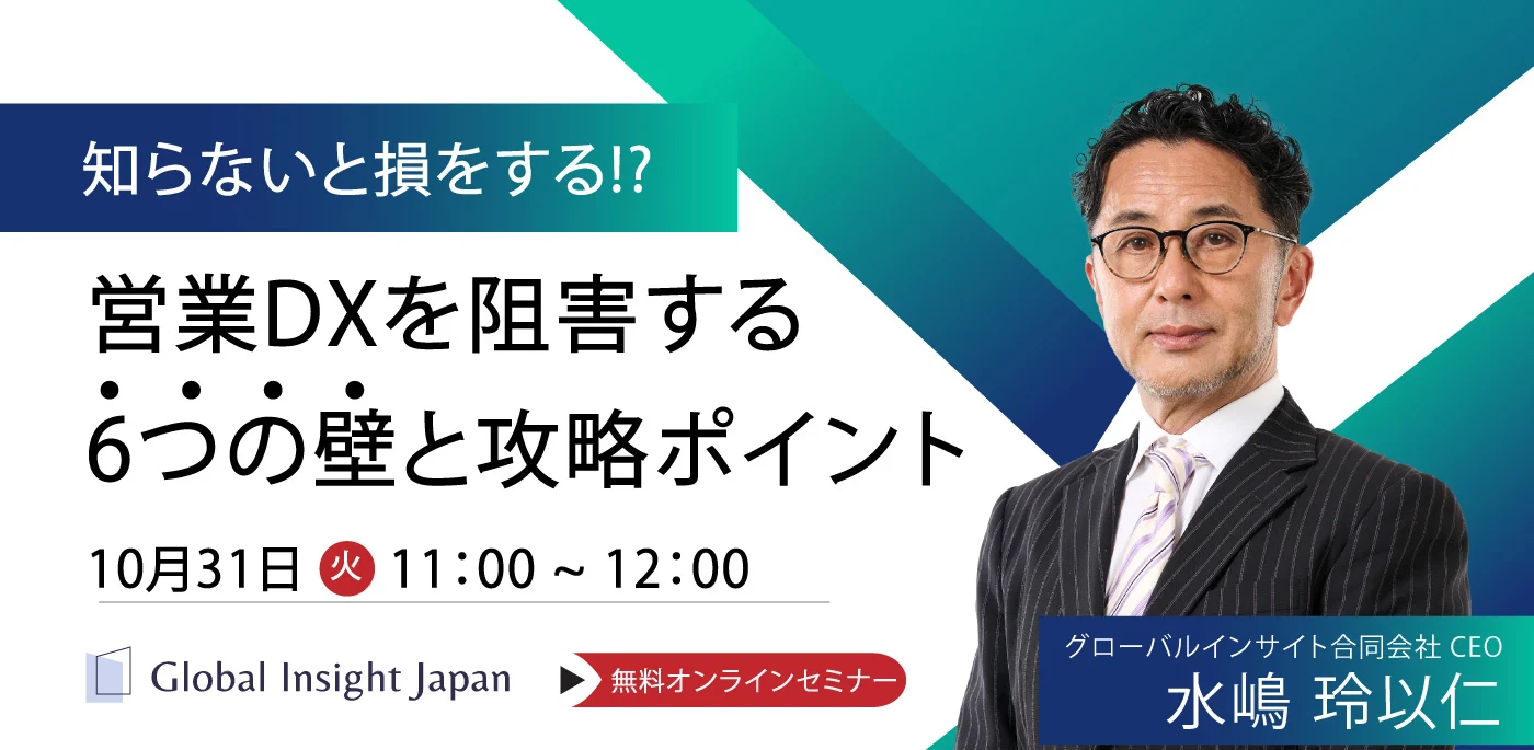 【無料ウェビナー】「知らないと損する?営業DXを阻害する6つの壁と攻略ポイント」を開催【10月31日(火)11時開催】