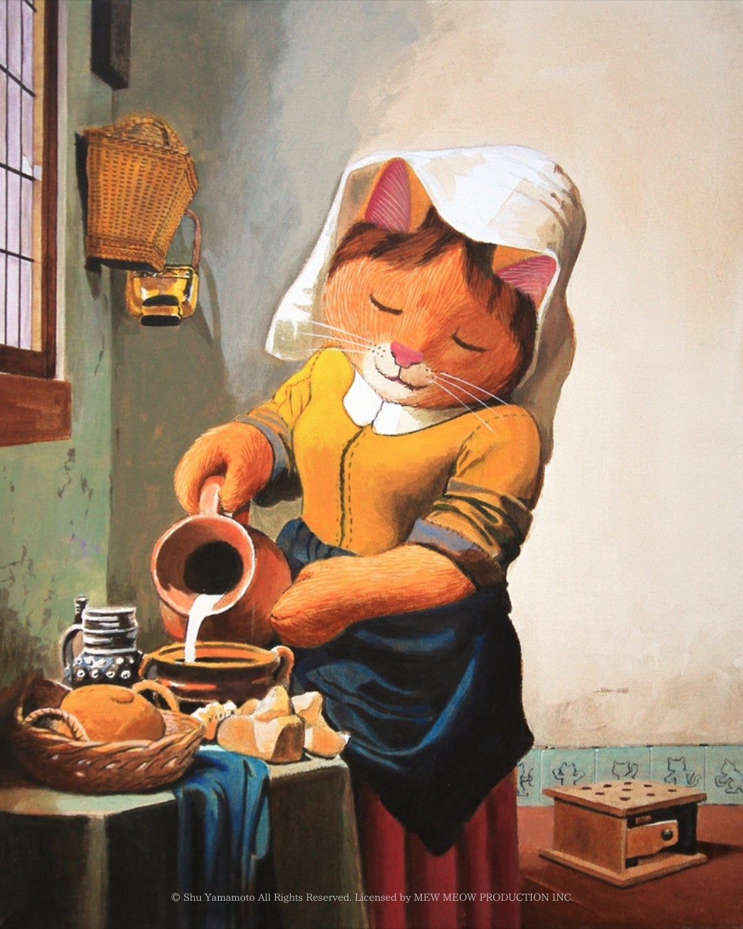 「モナ・リザ」や「真珠の耳飾りの少女」など、古今東西の名画をモチーフに、猫が主人公となった新しい世界観を創り出すCAT ARTを展開。