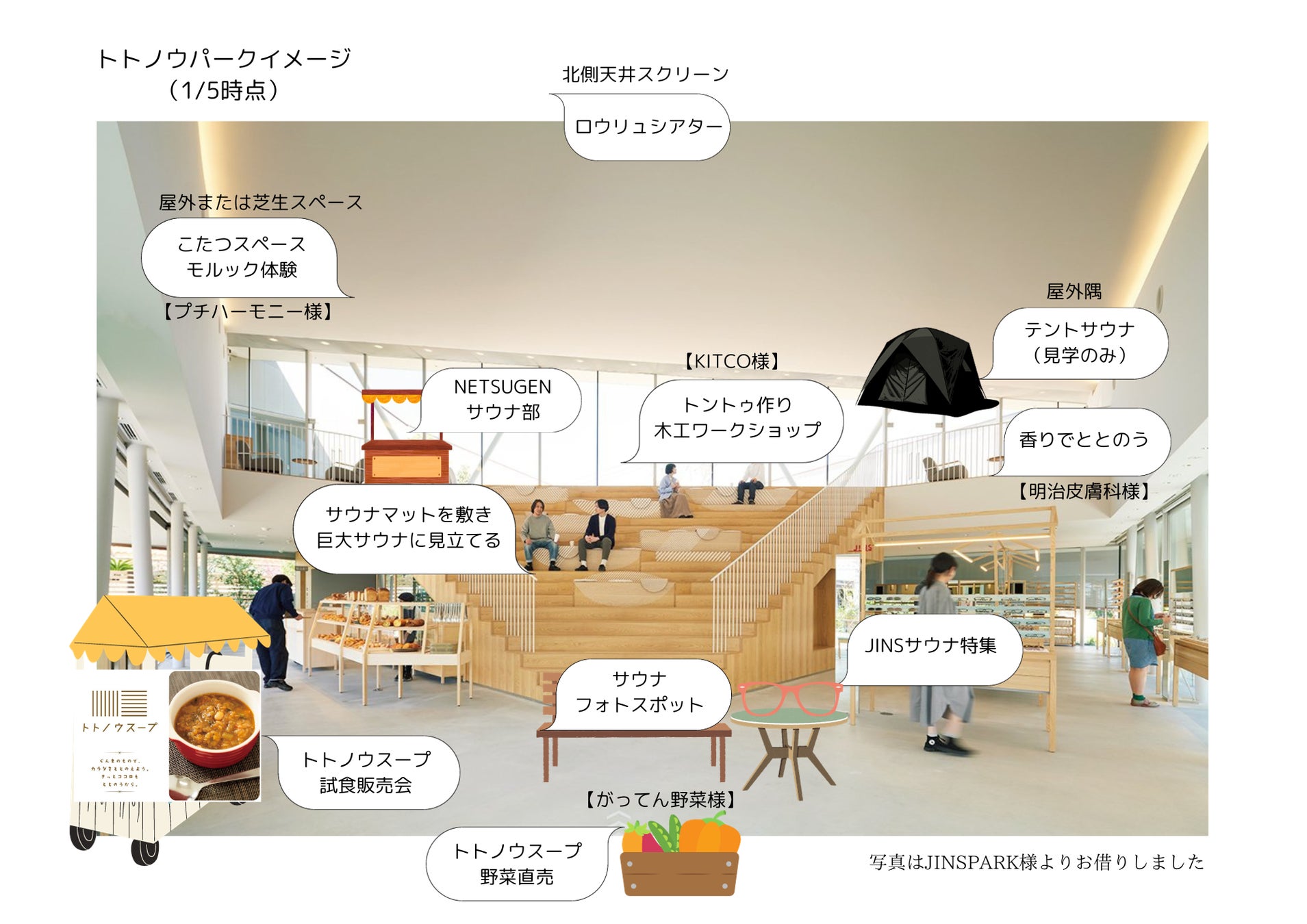 開催内容:トトノウスープ試食会/野菜直売/ロウリュシアター