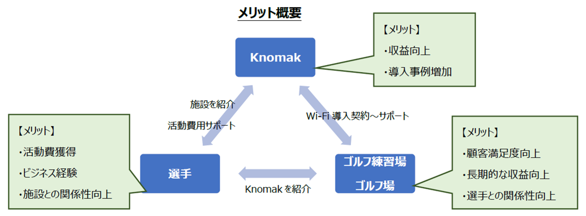 選手は必ずゴルフ練習場やゴルフ場、インドアスタジオで練習を行います。選手によっては施設からボール代や練習ラウンド環境の提供を受けていることもあります。本キャンペーンは、そのような繋がりのある施設にて、フリーWi-Fi導入の希望や検討をされている施設がある場合に、選手が当社サービスを紹介することで、選手に当社の営業部隊の一翼を担い、その対価として活動費のサポートをするというものです。