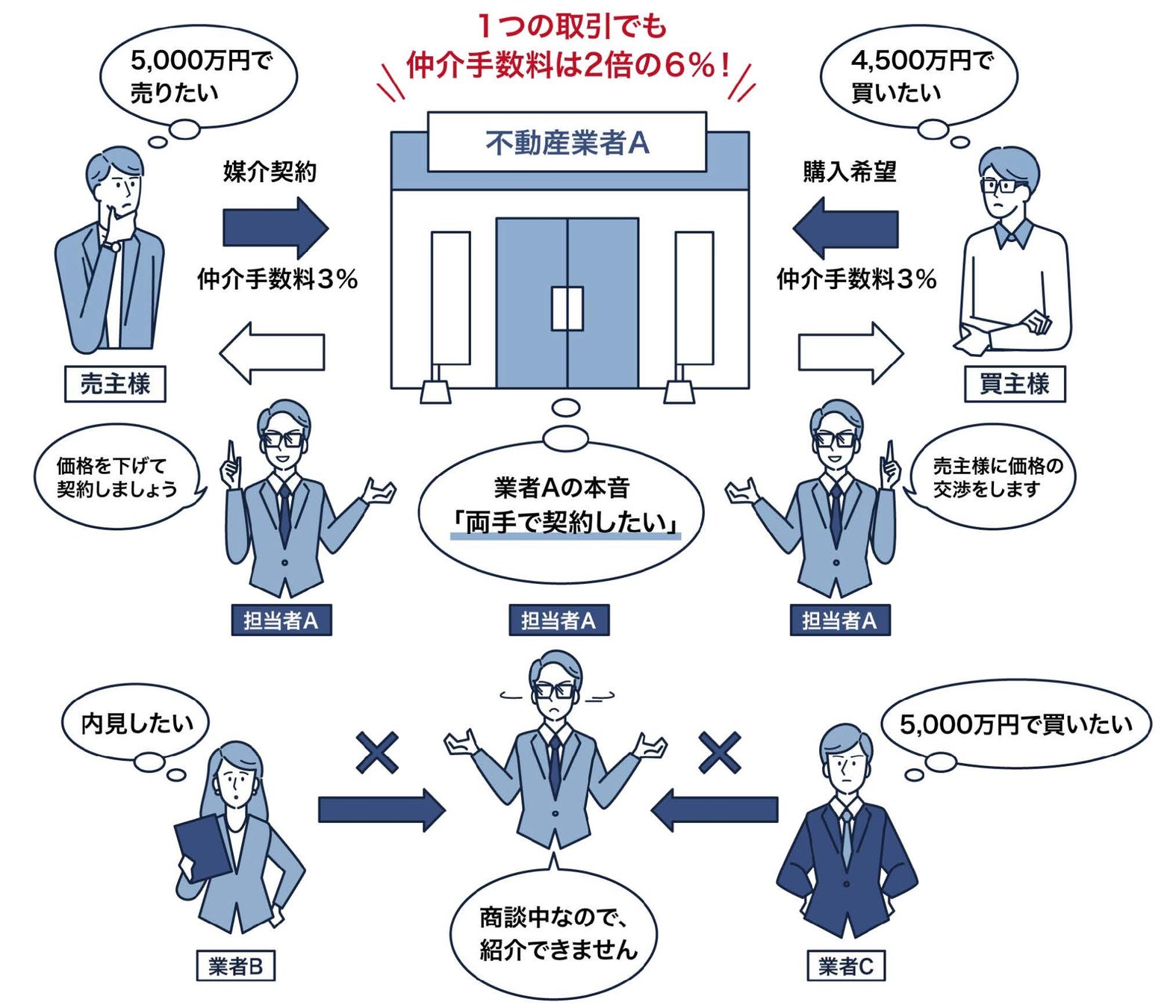 2.売主様の仲介手数料半額のケース(買主様は内覧を行った他の仲介会社に仲介手数料を支払う。)