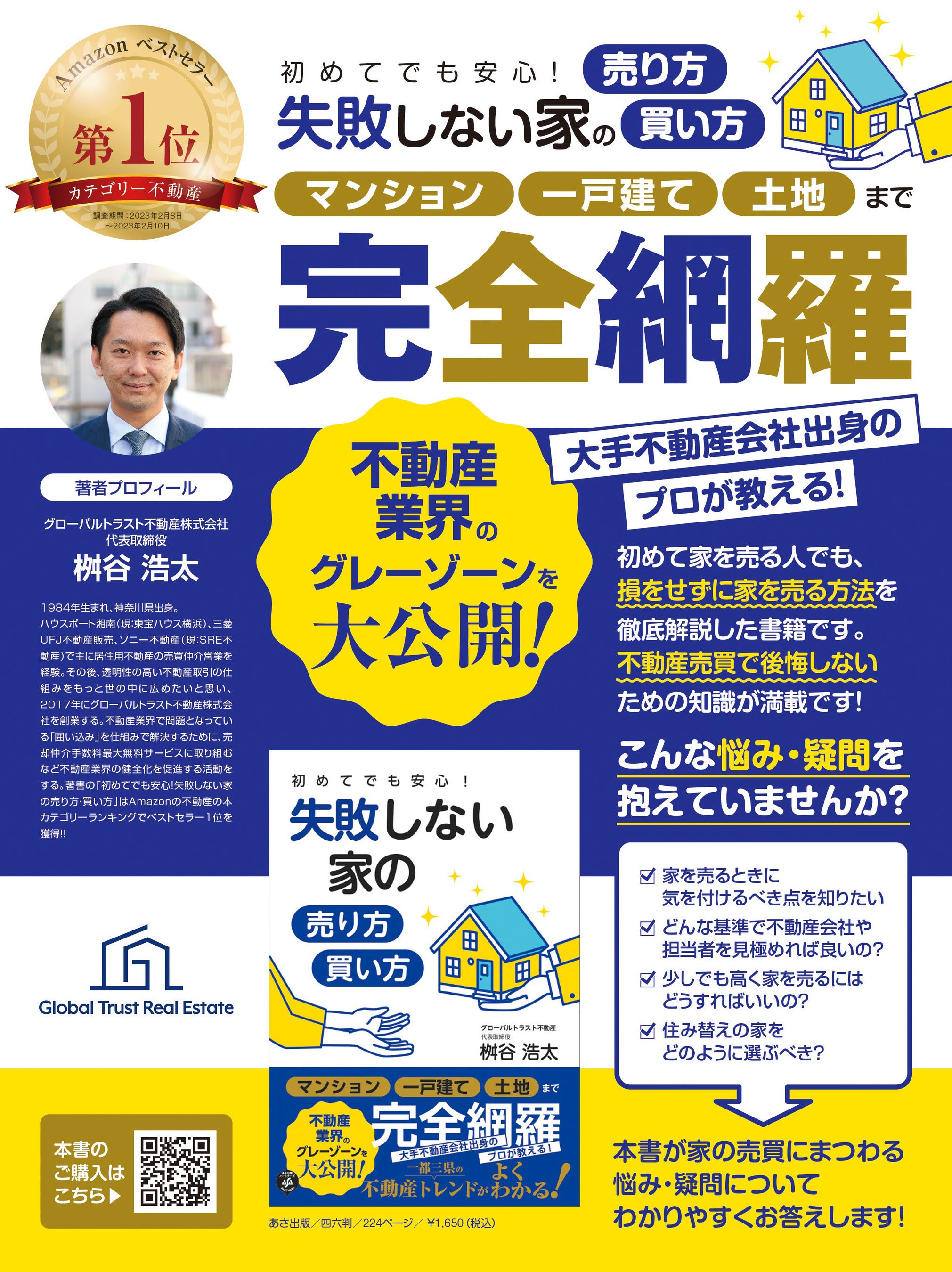 当社代表の桝谷が2023年2月に発刊した著書『初めてでも安心!失敗しない家の売り方・買い方』(出版:株式会社あさ出版、定価:1,650円(本体1,500円+税)は、Amazonで3部門ベストセラー&総合ランキングでも13位にランクインするなど、好評を博しています。