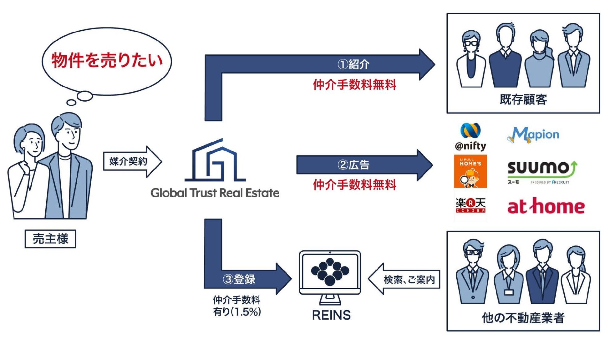 仲介手数料無料で保証付きサービスは業界初の試みであり、売主様にとって大きなメリットとなります。