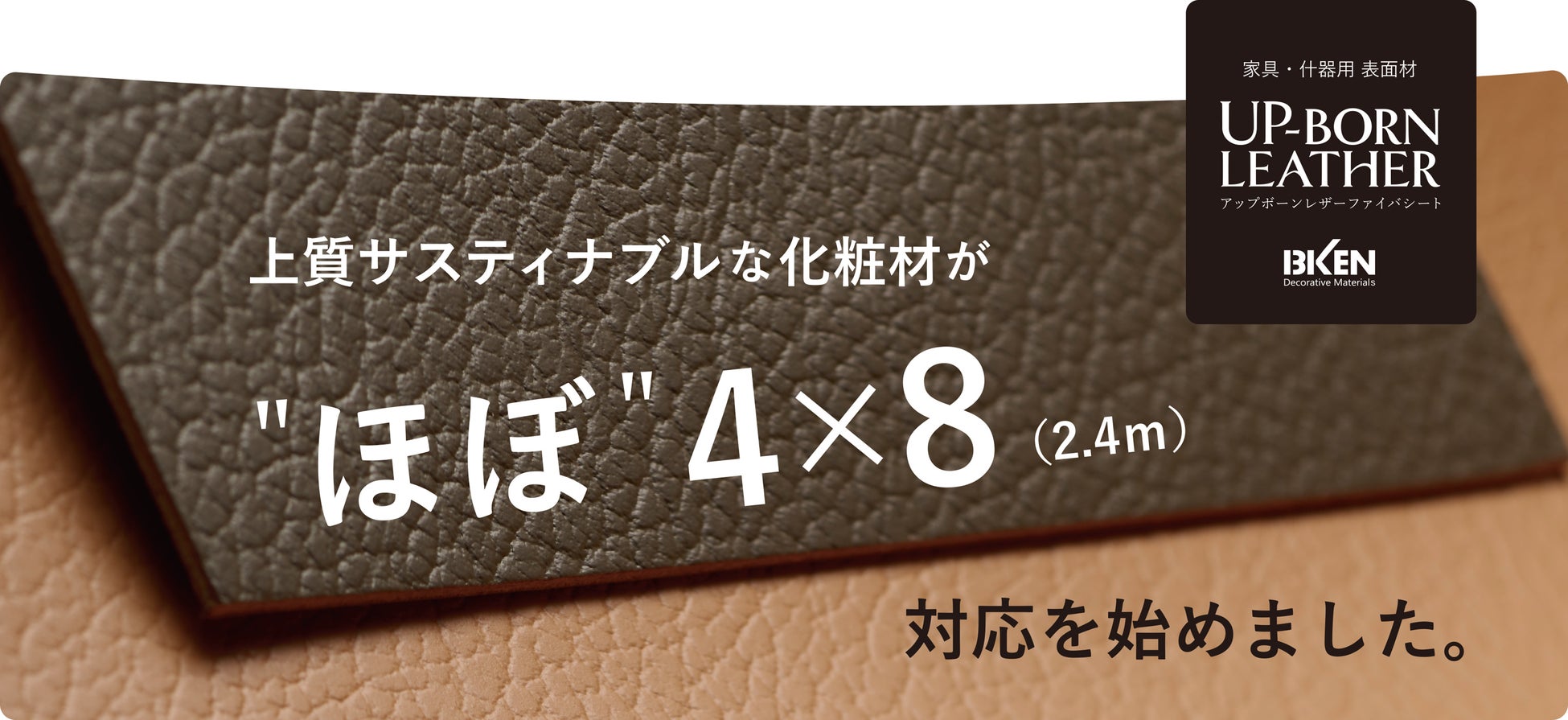 【UP_BORN LEATHER】上質サスティナブルな化粧材が、2.4m(ほぼ4×8サイズ)常備対応を始めました。