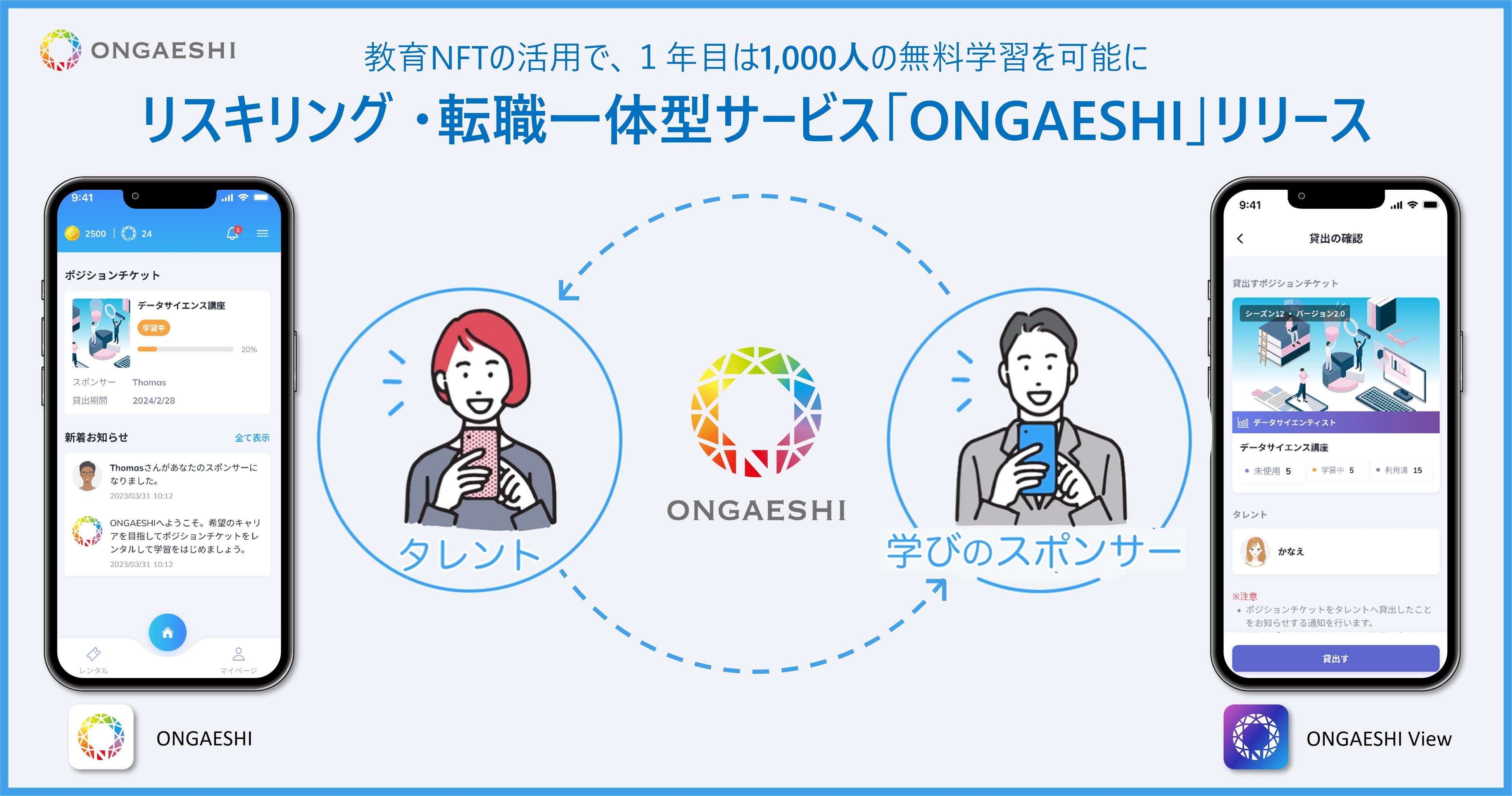 【教育NFTの活用で、1年目は1,000人の無料学習を可能に】リスキリング・転職一体型サービス「ONGAESHI」リリース