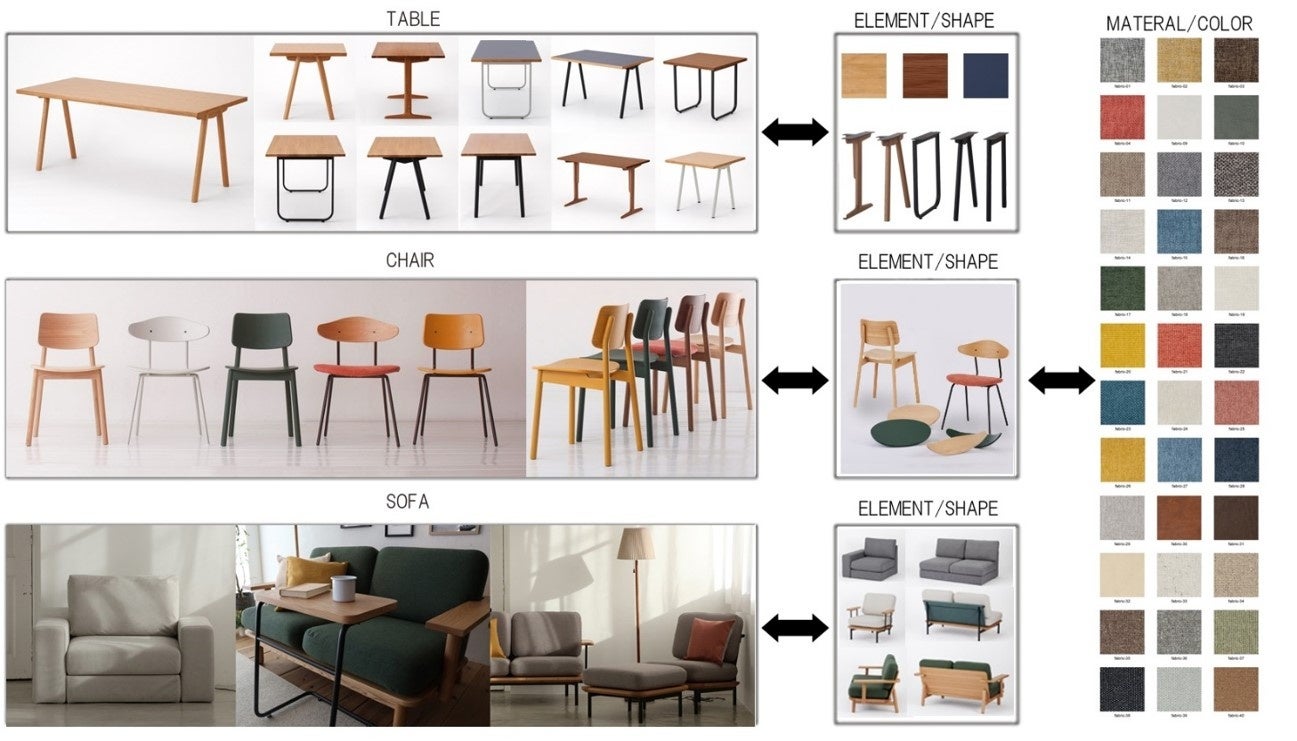 豊富な素材と形状からライフスタイルに合わせて組み合わせることができ、スマートな生活を実現する機能性、長く使い続けられる耐久性、お使いの家具とも馴染む普遍的なデザイン、商品の経年劣化に伴うメンテナンスや修理のしやすさが特徴です。カテゴリーは、チェア、テーブル、ソファの3種から販売開始し、順次増加予定です。