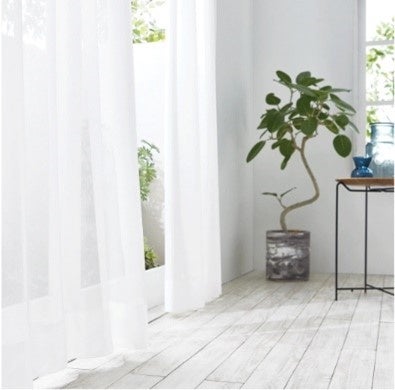 ネートにも合うシアーカーテン。「UVカット・ウォッシャブル・ミラー・シャドウオフ」と嬉しい高機能。