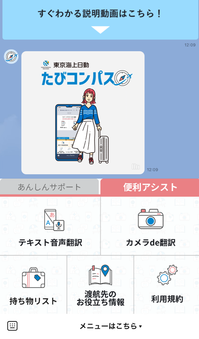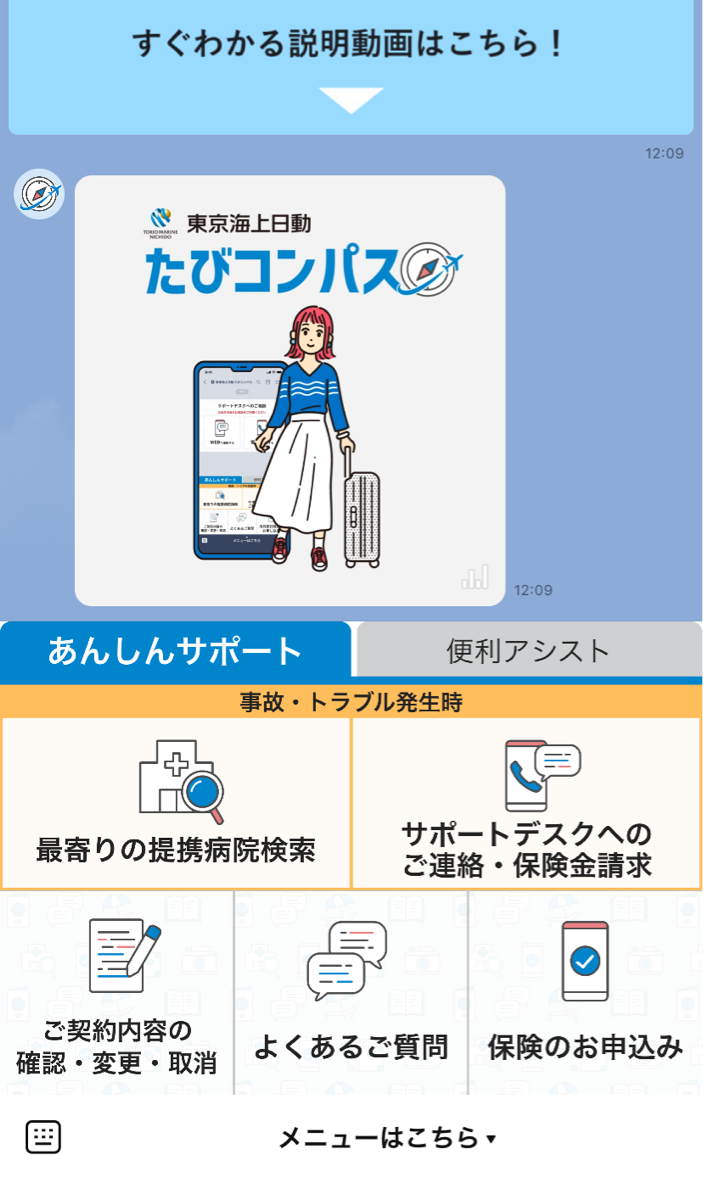 【「東京海上日動 たびコンパス」のLINE画面イメージ】
