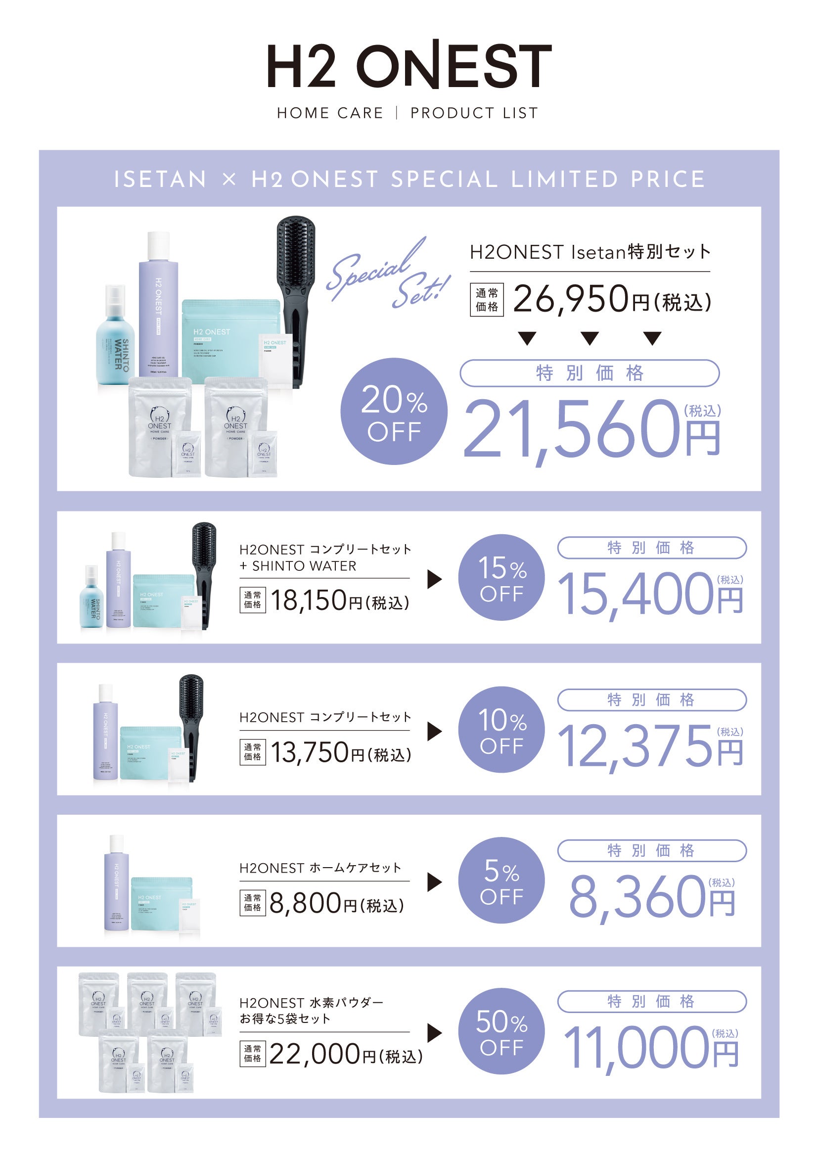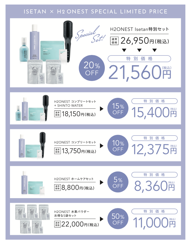 最大50%オフの限定セットをはじめ、H2 ONESTの人気アイテムがセットになって特別価格で登場いたします。