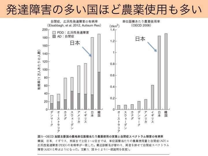 特に、食べものを通じて摂取される「ネオニコチノイド農薬」などの化学物質による神経発達阻害生理的要因との関連が、第一線で活躍する一流の複数の専門家(研究者)からも指摘されています。