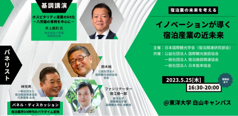 5月25日16:30より_宿泊業の未来を考えるシンポジウム開催決定・申し込み受付開始「イノベーションが導く 宿泊産業の近未来」がテーマ