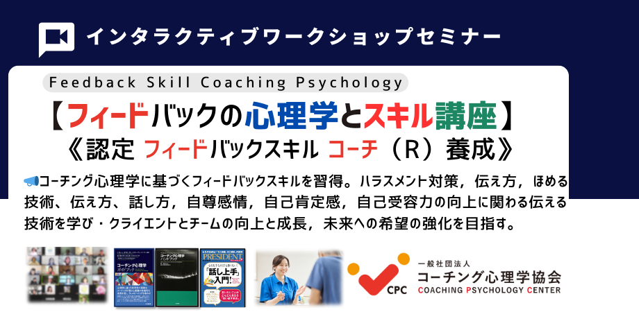◆【ハラスメント対策,ほめる技術,伝え方の技術】 フィードバックスキルコーチング基本講座2025開催 フィードバックの心理学とスキルとは?