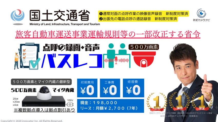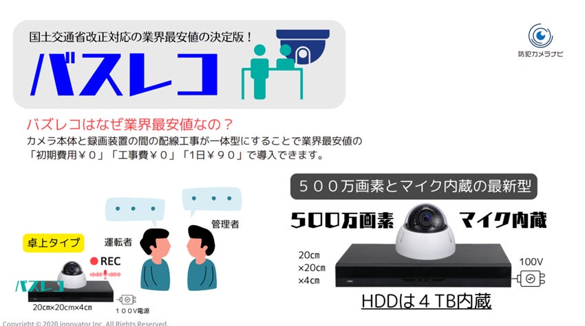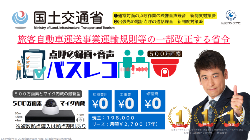 【道路運送法改正に対応】工事不要・3ヶ月保存可能点呼カメラ「バスレコ」をリリース
