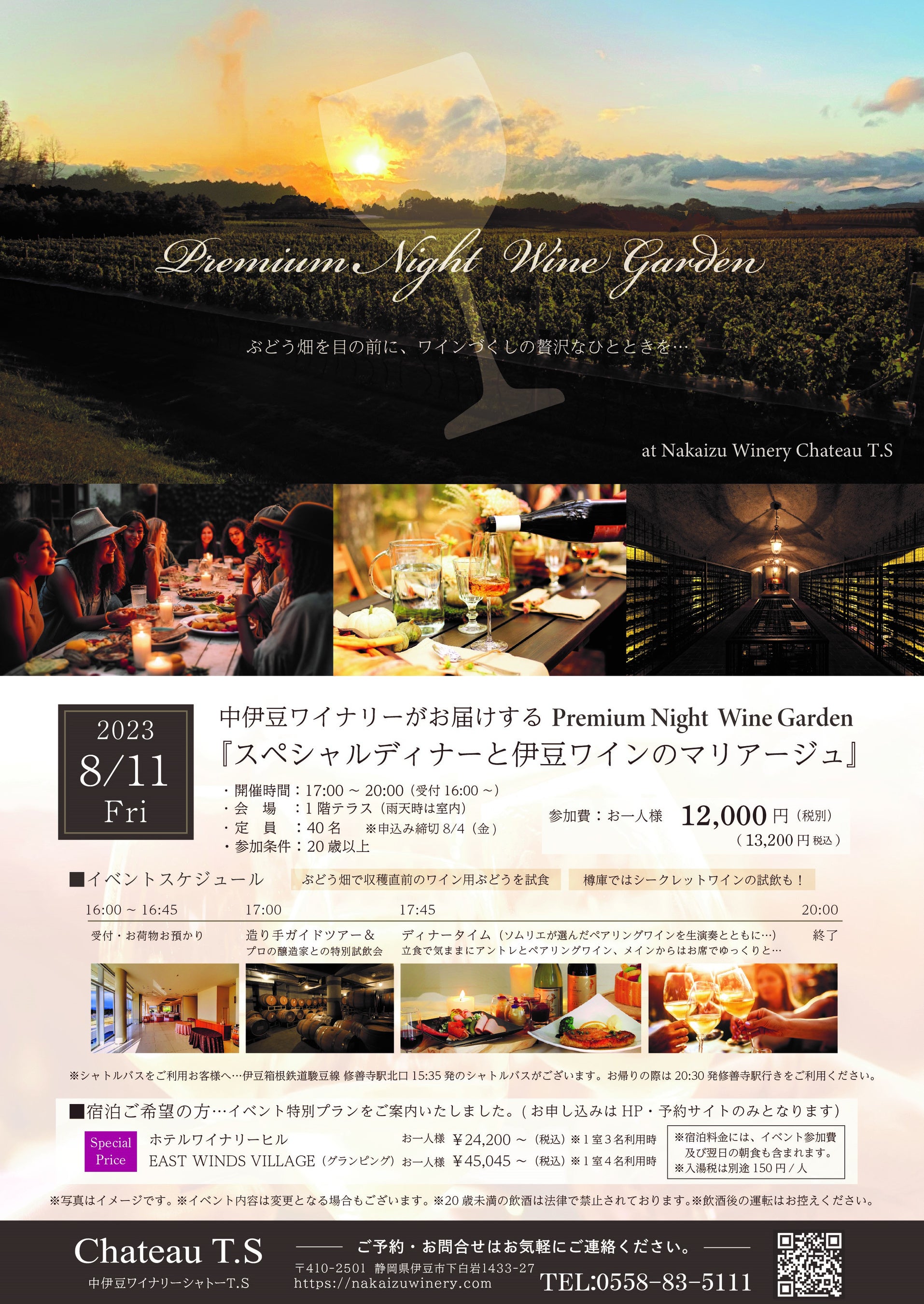 【中伊豆ワイナリーヒルズ】一夜限りの「Premium Night Wine Garden」開催のお知らせ