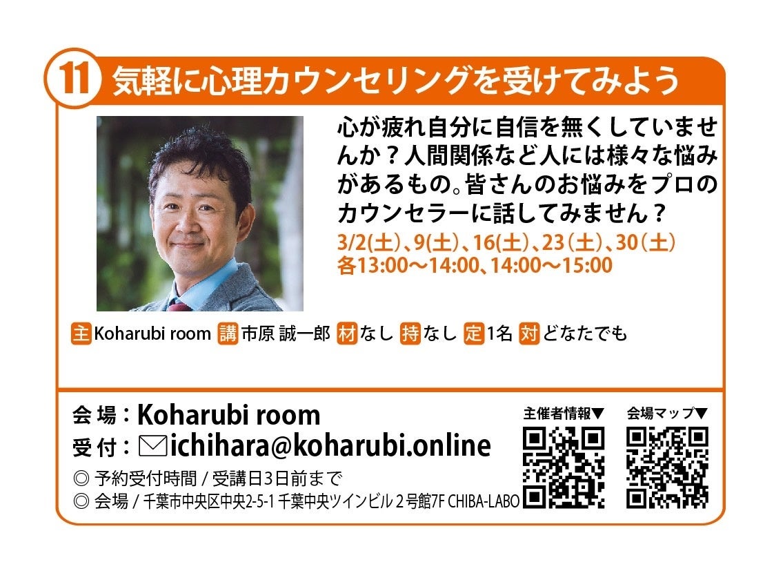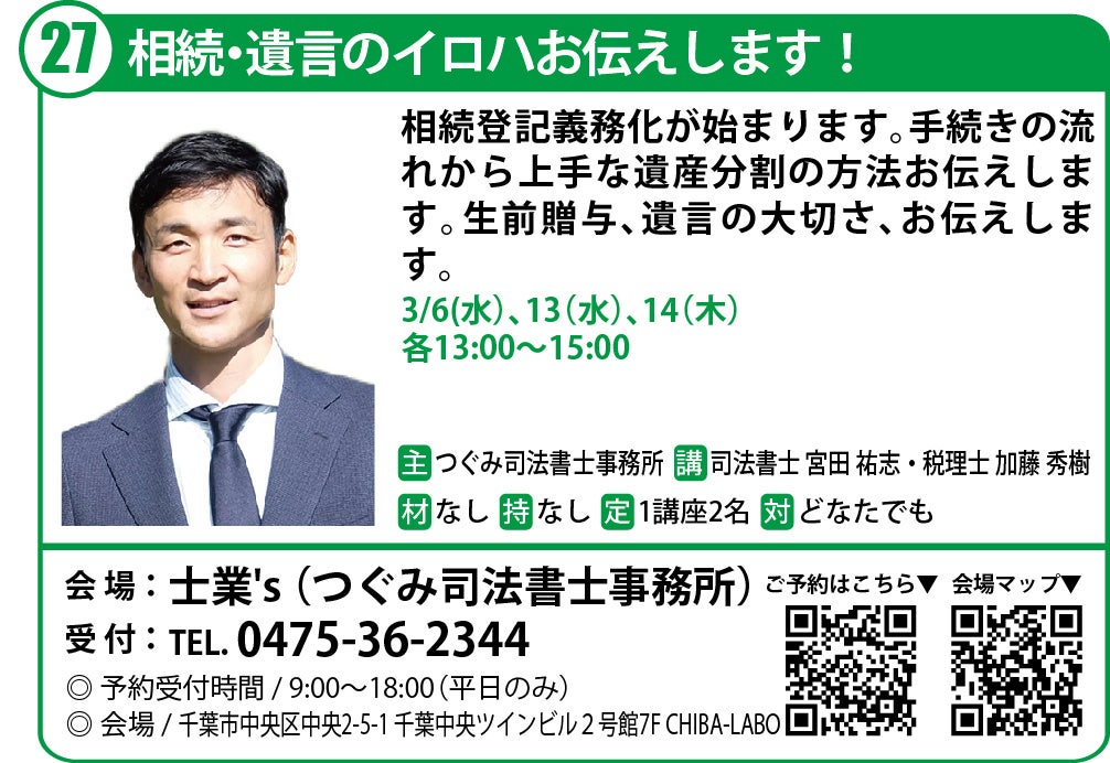 チバラボで学び体験する。生活と仕事に役立つまちゼミ。相続遺言・給与労務・心理ケア・メタ認知の4名のプロが無料で知見を提供。