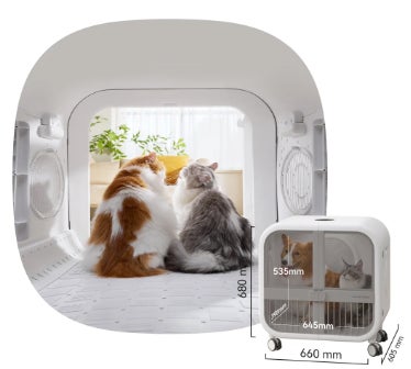 135Lの大容量(内部寸法W664*L400*H535mm)の為、胴長な子や多頭飼いのご家庭でもゆったりとドライヤータイムをお過ごしいただける仕様となっております。
