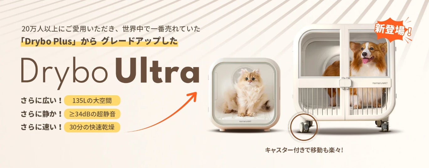 ペット家電メーカー「homerunPET(ホームランペット)」(本社:中国 広州市)は、2024年10月11日(金)12時より公式サイトにて、20kgの中型犬まで対応可能な大型ドライヤーハウス「Drybo Ultra」の先行予約販売を開始しました。