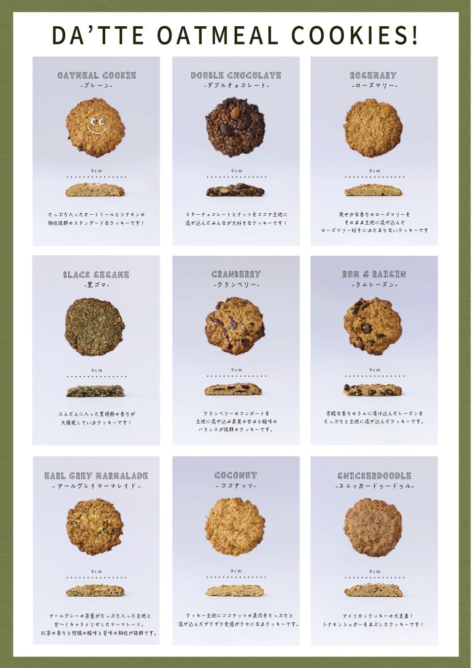 現在は全9種類のオートミールクッキーとギフトボックスを販売中。