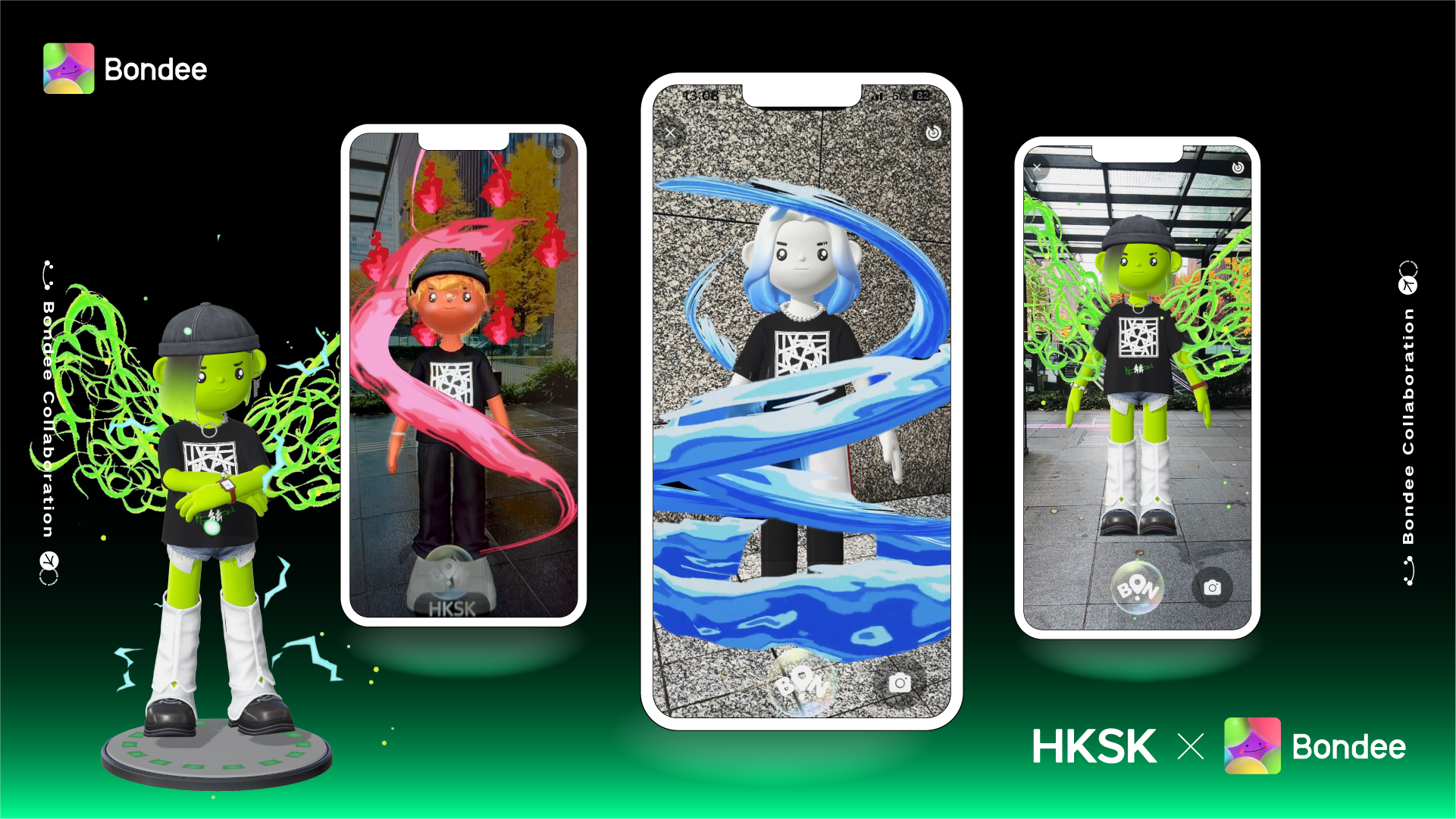 ブース内ではHKSK Studiosが提供する、メタバース/Web3.0時代におけるファッション「XRT」に関する展示と、その技術を用いて、「Bondee」を通しメタバース空間で「XRT」を着用いただける体験が可能です。