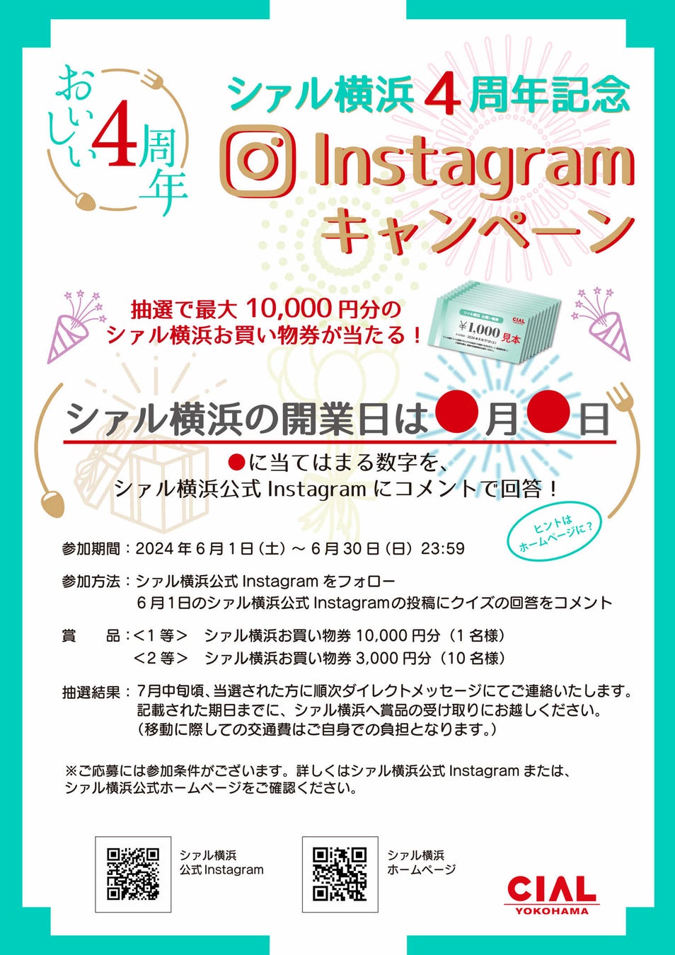■【キャンペーン詳細】『シァル横浜4周年Instagramキャンペーン』開催中! | ニュース&イベント | CIAL横浜