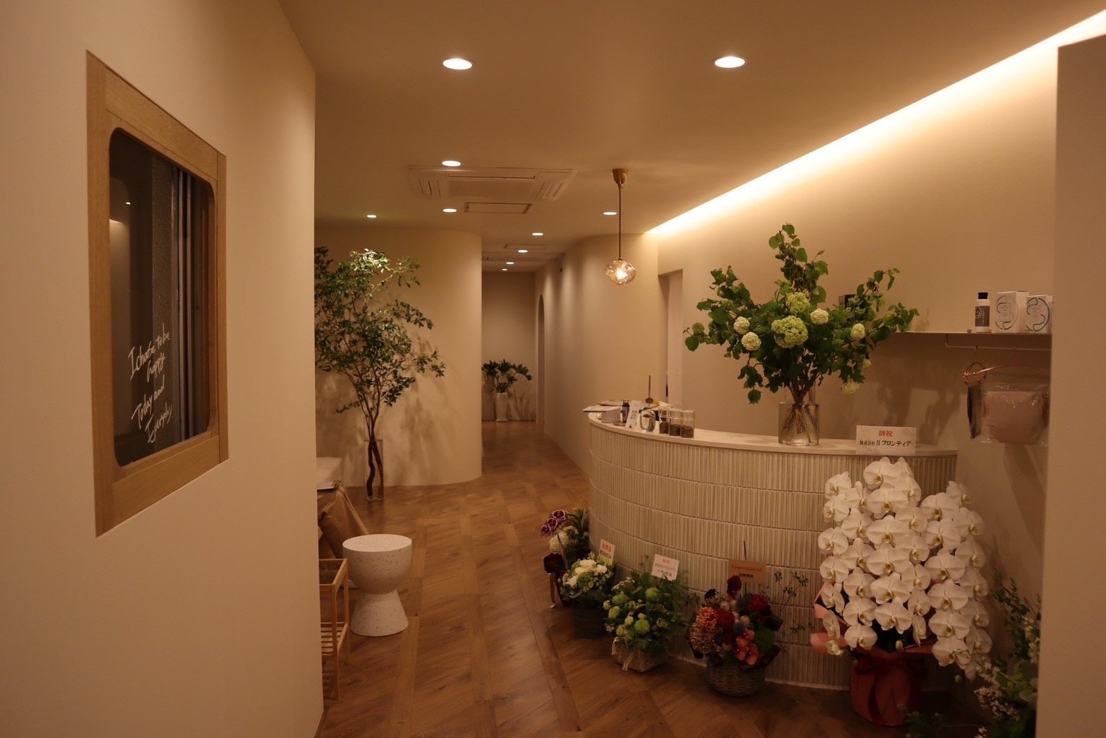 空間デザインのテーマは「心からあたためる」ことです。ただ美しい空間ではなく、足元から頭まであたためて、心がほっとする時間を提供したい。そんな想いでデザイナーとつくりあげました。「心休まる場所に戻って来た」忙しい日々の中で一呼吸つく瞬間を大切にしたいので、ご来店の際は、くつを脱いでお入りいただいております。