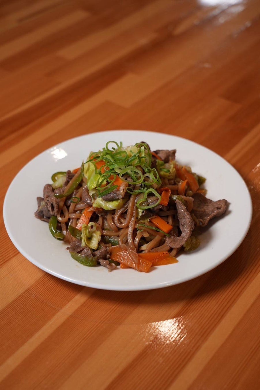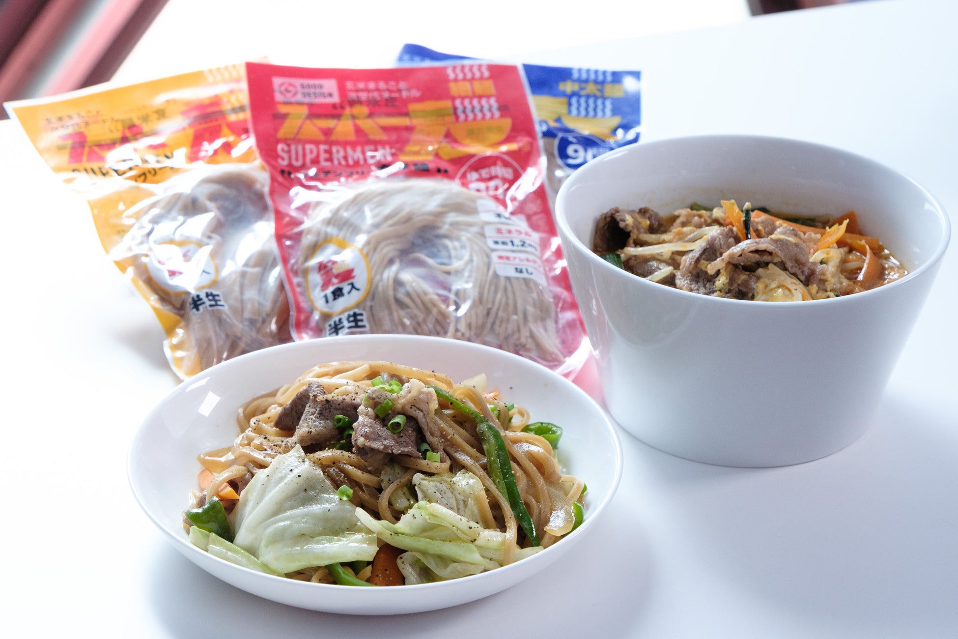 和牛の旨味をスーパー麺にしっかり絡ませたスタミナ系焼きそば風レシピ。